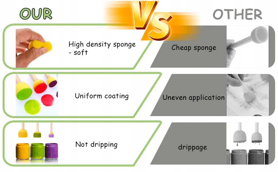 Широкий спектр применений: h1> - Губковые кисти для живописи являются практическими инструментами для рисования для различных художественных и ремесленных проектов, которые можно использовать для украшения салонов, обоев спальни, глинистых миниатюр, пятен или красочных окон, подходящих для подростков или энтузиатов.