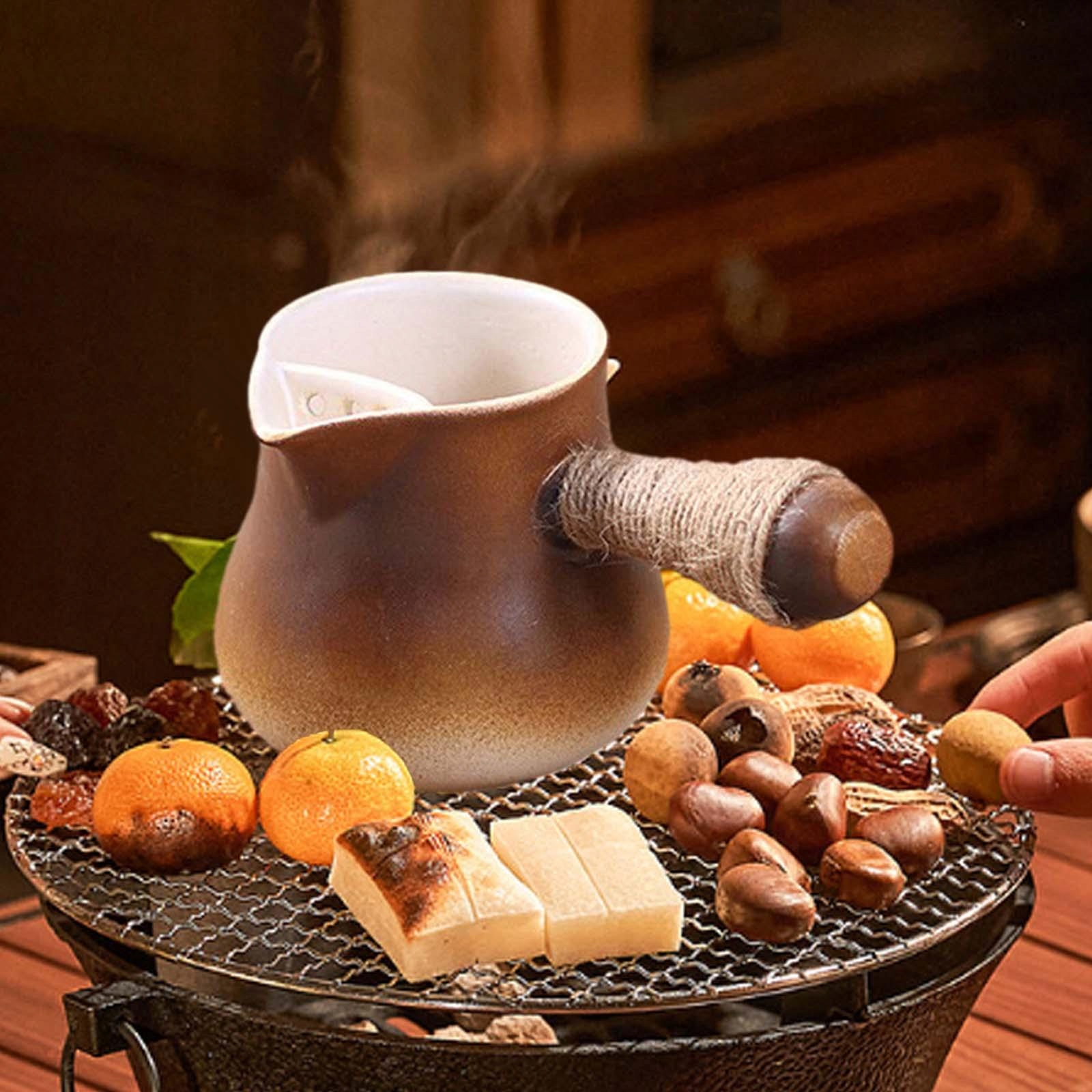 [Эргономичная ручка]: эргономичная ручка чайника с обернутой вокруг нее льняной веревкой, которая эффективно предотвращает ожоги, не скользит и обеспечивает удобный захват.