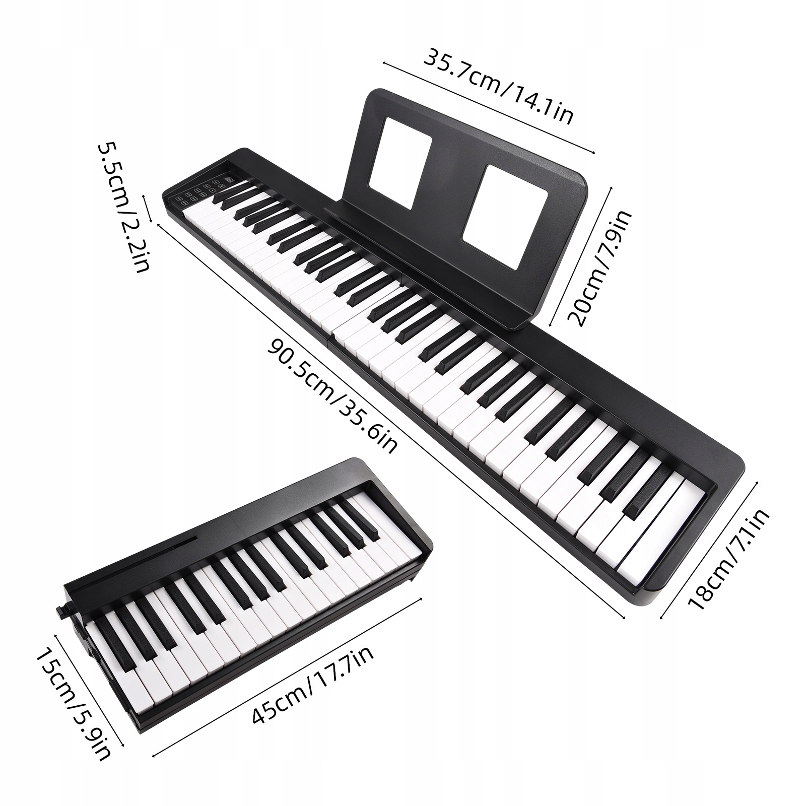 Функция: 1. 【Складывающая конструкция】: клавиатура пианино может быть сложена пополам, сохраняя пространство и портативное в пакете передачи; Встроенная зарядная батарея делает его удобным для использования снаружи.