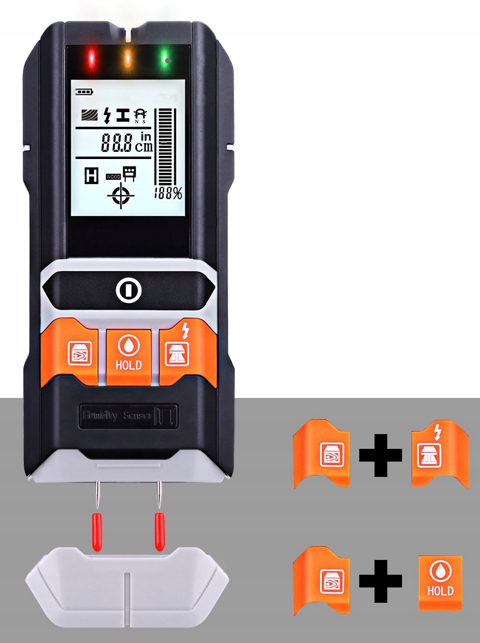 Современное и удобное устройство для обнаружения кабелей, проводов, металлов, дерева и измерителя влажности! Гаджет, необходимый для сотрудников индустрии установки, чтобы предотвратить ущерб, что является результатом бурения в неправильных местах! , например, подкрепляющие стержни), балки и провода напряжения, руководства в стенах керамики и полов, также содержащих керамические плитки, дерево
