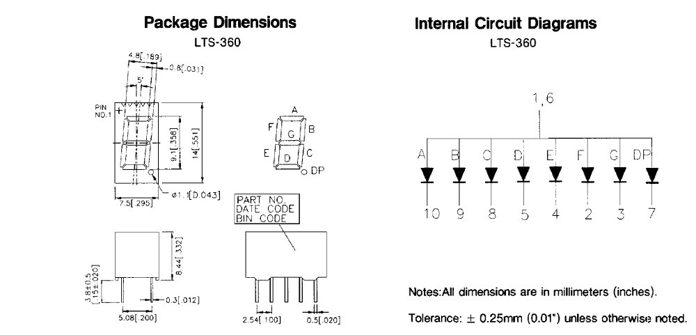 7-сегментный Нумерея Дисплей h1> Высота числа 9 мм, общий анод h1> красный (655 нм), яркости 0,50MCD h1> Производитель: lite-on, тип: LTS-360R h1>