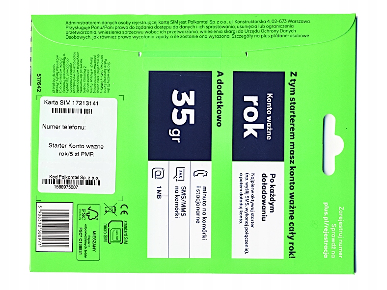 - 4 злотых для звонков, текстовых сообщений, MMS, интернета.