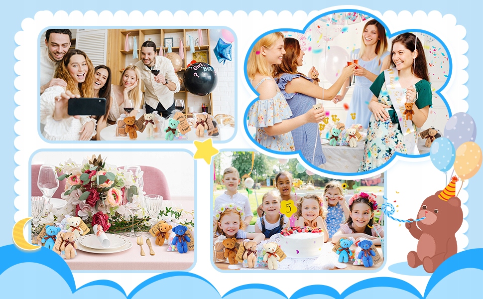 Эти мини -медведи являются идеальным дополнением к детский душ, вечеринки по случаю дня рождения, свадьбы, годовщины, а также могут быть использованы для заполнения мешков подарками, школьными призами, а не только для того, чтобы произвести на жизнь.