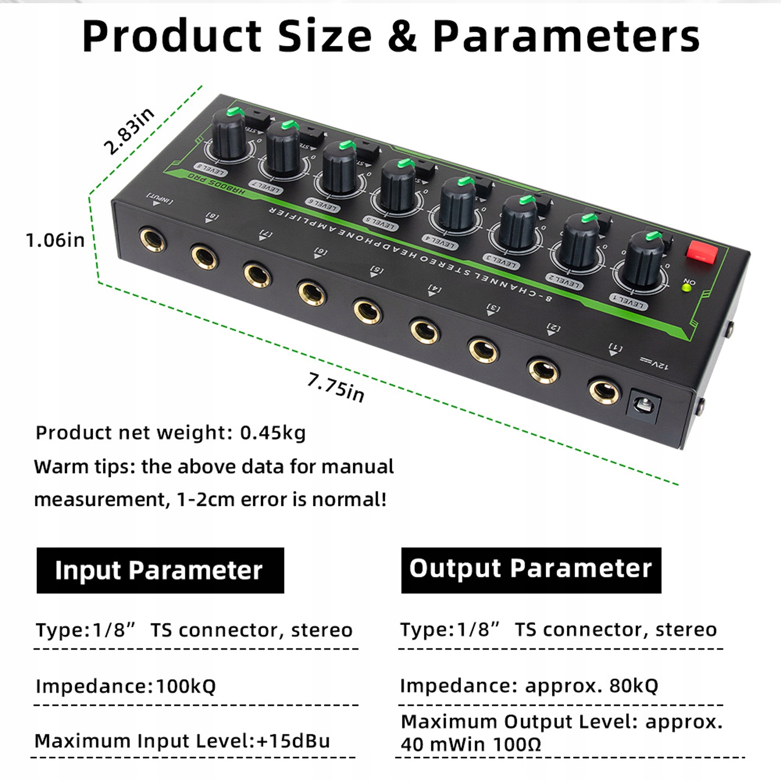 1. Воспроизведение звука: стерео 8 -канальный разветвитель предназначен для профессионального использования в исследованиях записи и сцен, обеспечивая исключительное качество звука для наушников. Благодаря встроенному усилителю наушников, каждый выходной канал обеспечивает самую высокую точность звука, обеспечивая привыкание к прослушиванию.