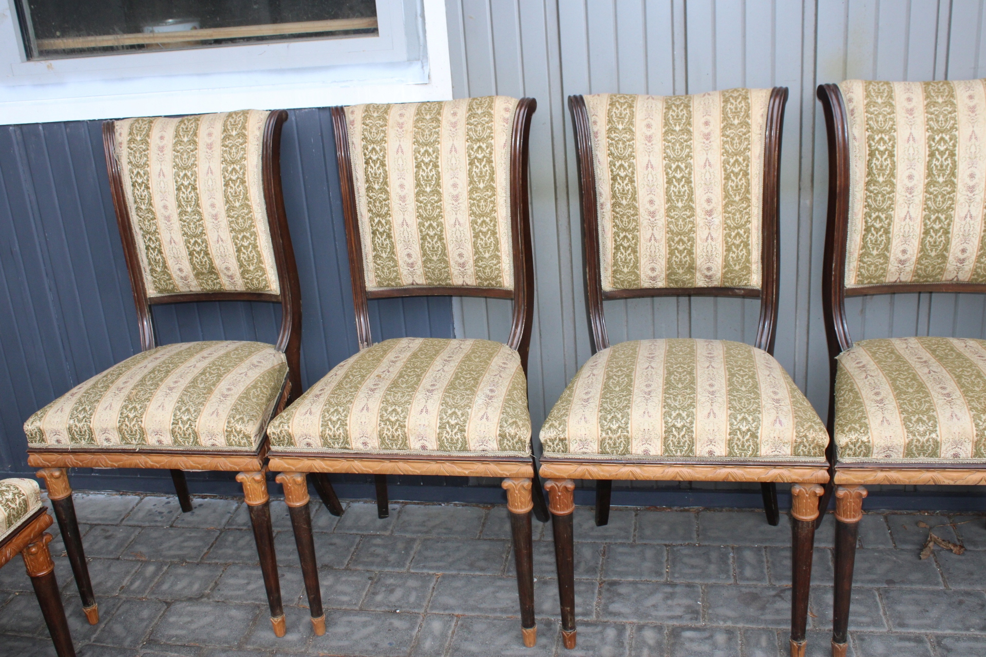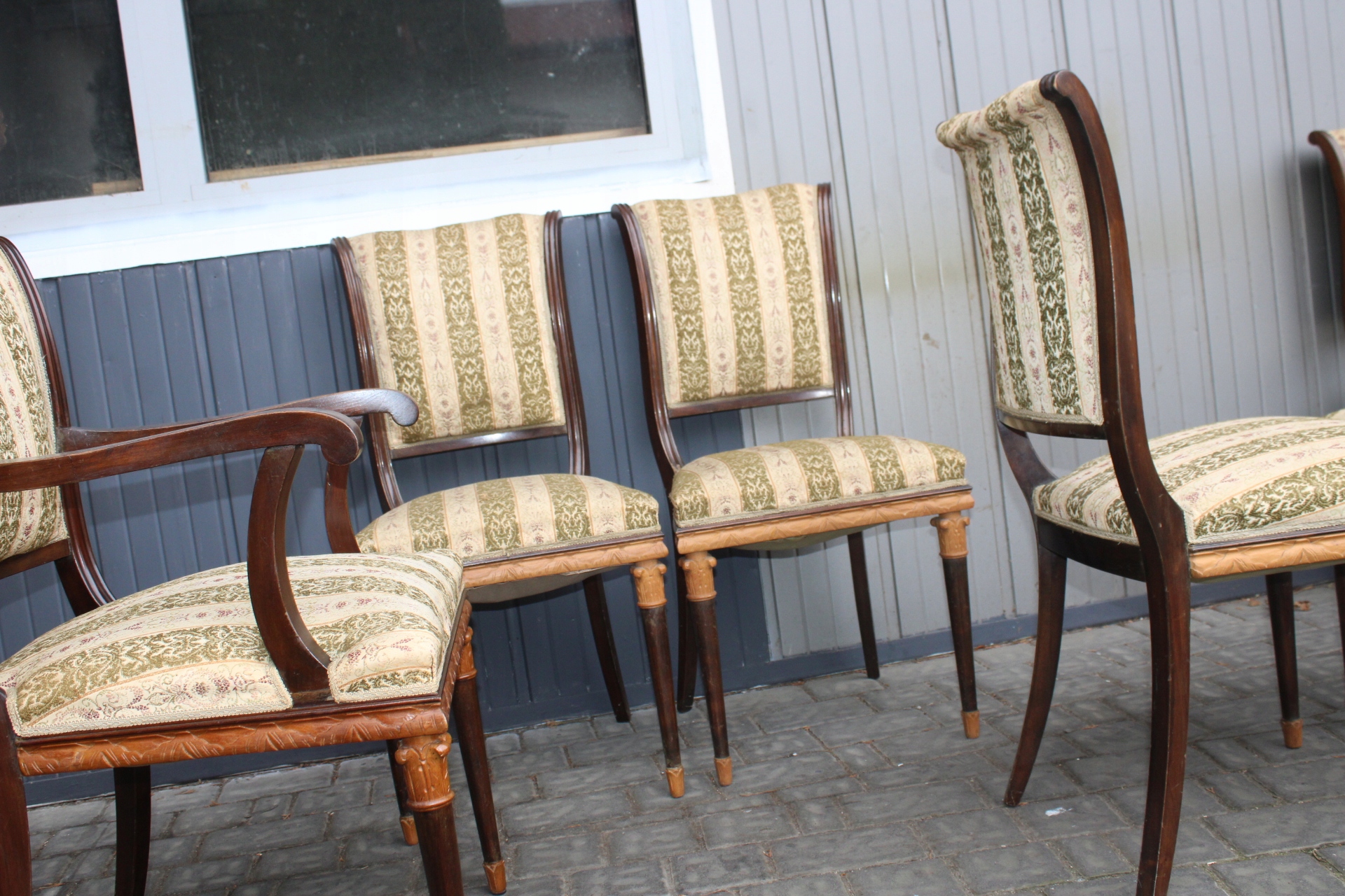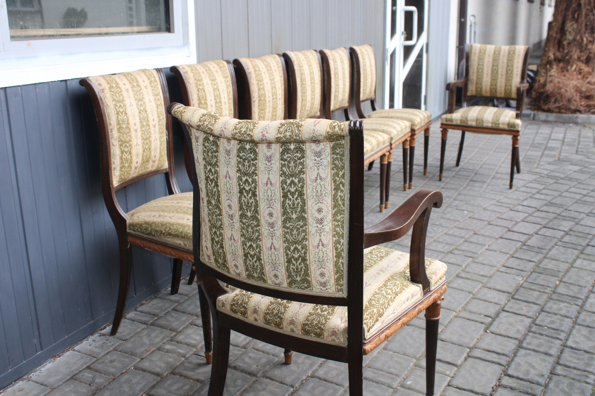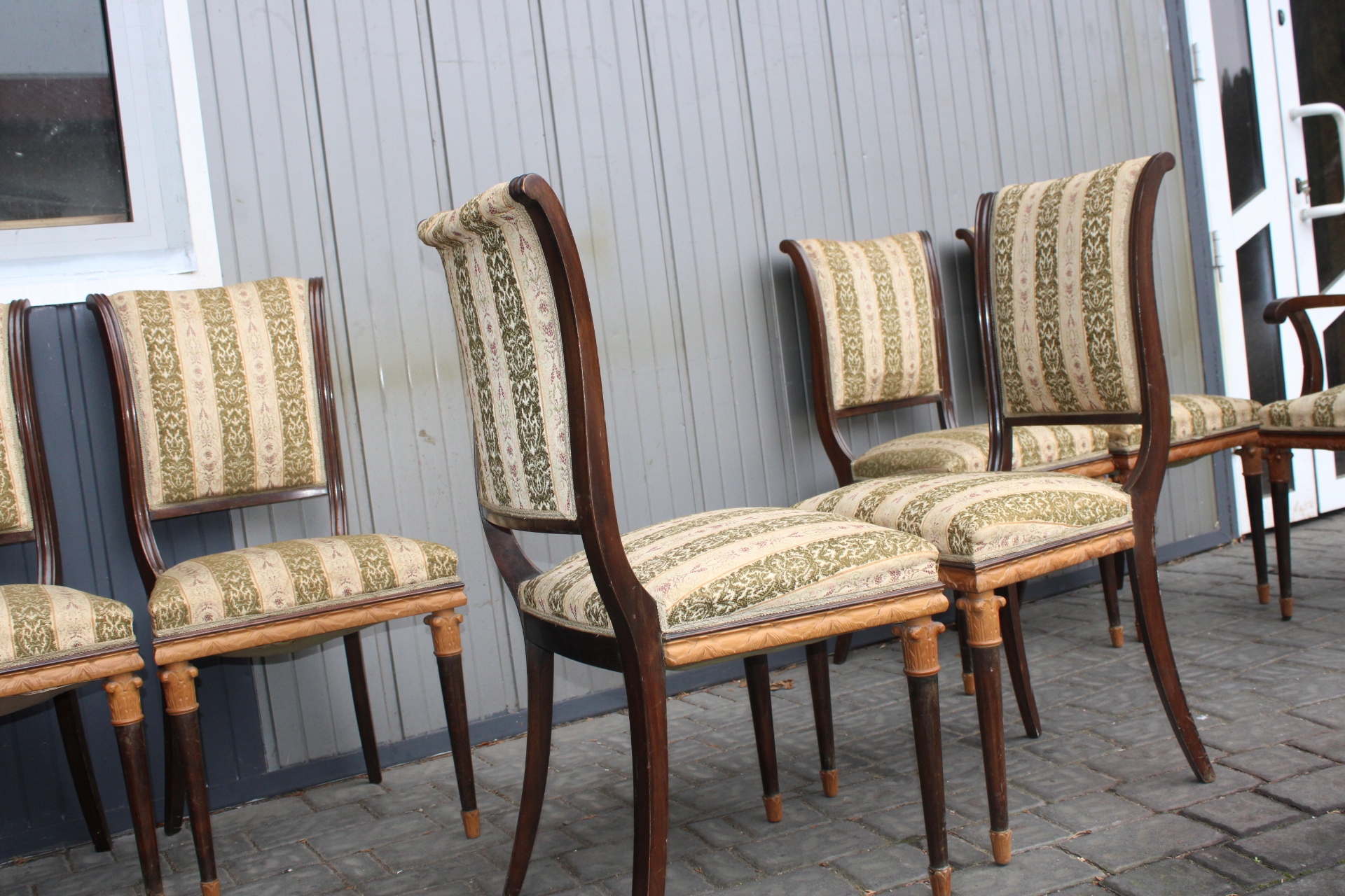 A set of 8 pieces of empiric chairs, including two with armrests from the 1940s in the original condition of the beautiful model-original model-inside without scratching in good condition
