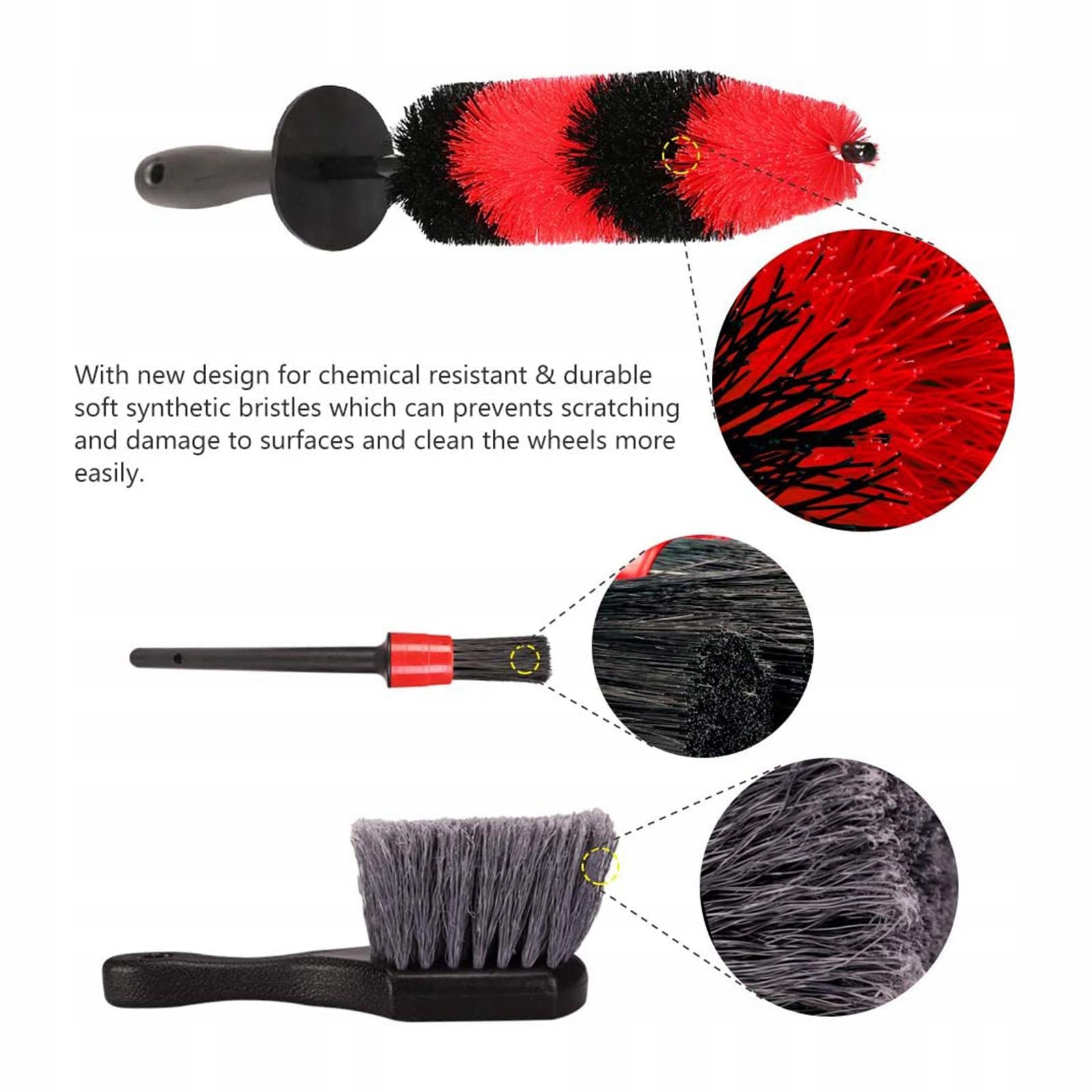 Широкий выбор Использование: В этот набор входят 3 типа щеток, которые можно очистить внутри и снаружи вашего автомобиля. Их можно использовать на легковых автомобилях, грузовиках, мотоциклах, велосипедах, транспортных средствах для отдыха, лодках, колесах, шинах, ступицах, спицах, моторном отсеке, выхлопных трубах, вентиляционных отверстиях, внутренних крыльях, колесных тормозах, шасси и т. д.