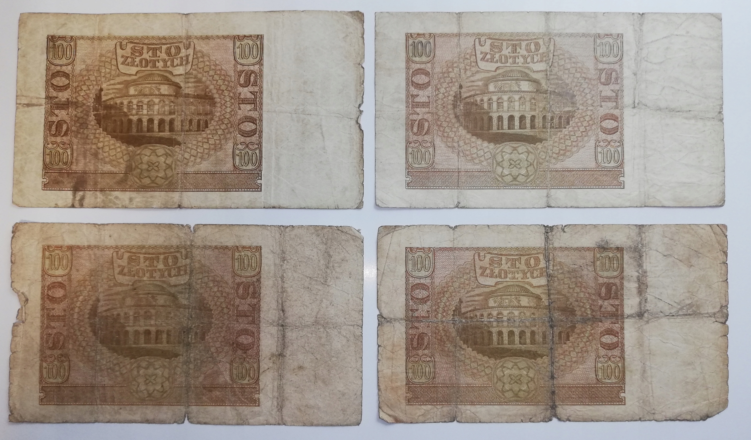 8 штук x 100 Zlotys 1932, 1934, 1940 банкноты.