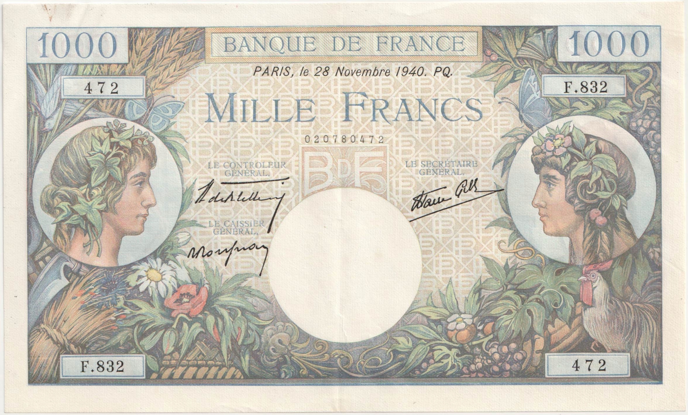 8.db.Франция, 1000 франков 1940 г., P.90.c, St.2