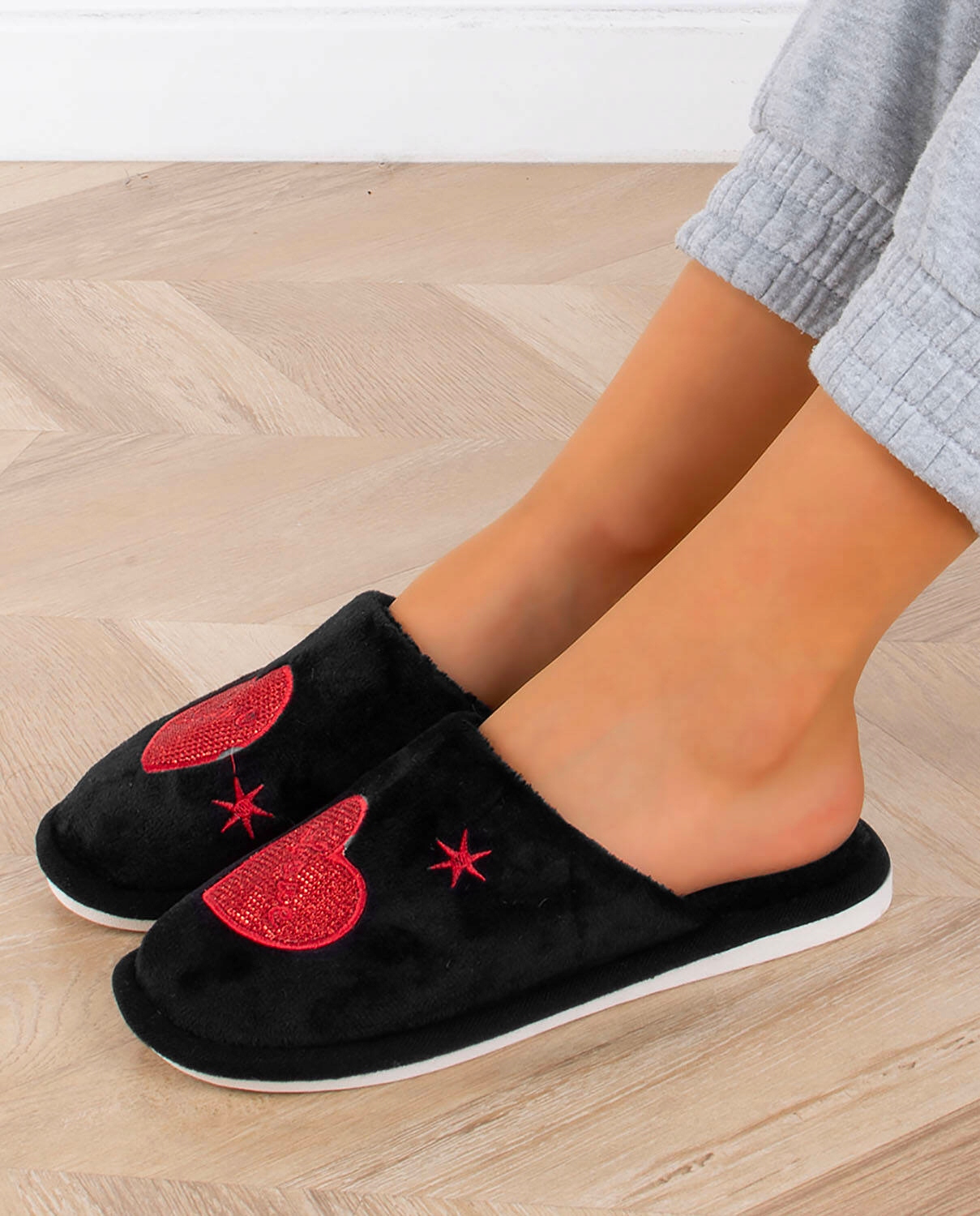 8471 ЧЕРНЫЕ ДОМАШНИЕ ЖЕНСКИЕ ТАПОЧКИ С СЕРДЦЕМ ТЕПЛЫЕ ТАПОЧКИ 38-39