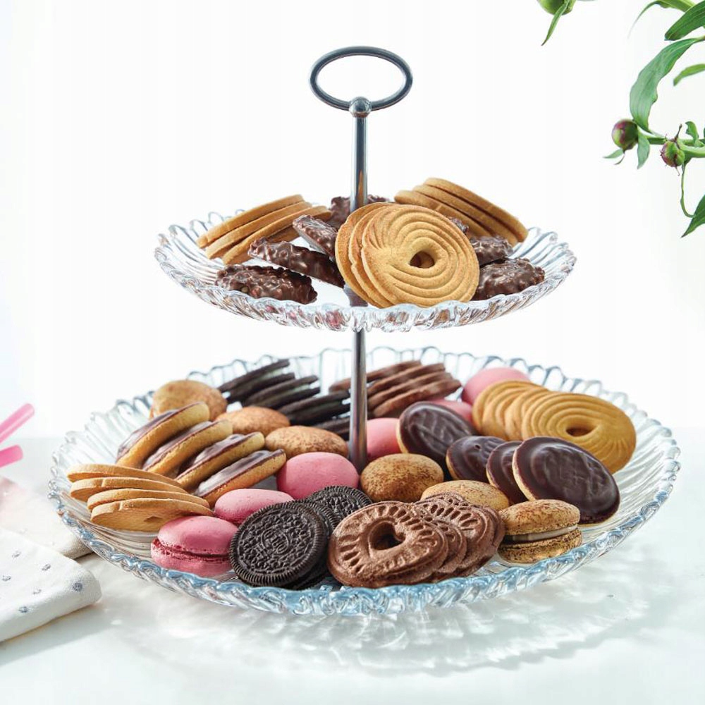 Двухуровневая тарелка позволит угостить гостей любимыми сладостями в неповторимой атмосфере.
