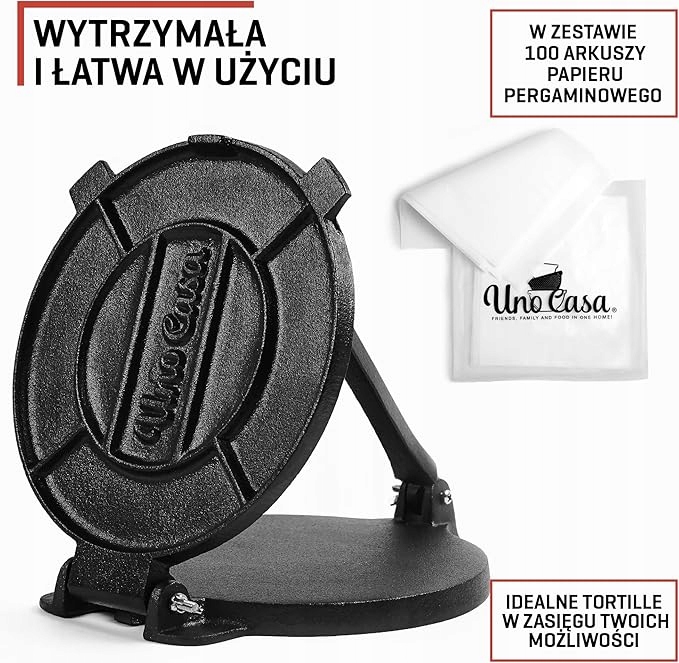 Чугунный пресс для тортильи Uno Casa, диаметр 20 см, машина для изготовления лепешек + 100 листов пергаментной бумаги