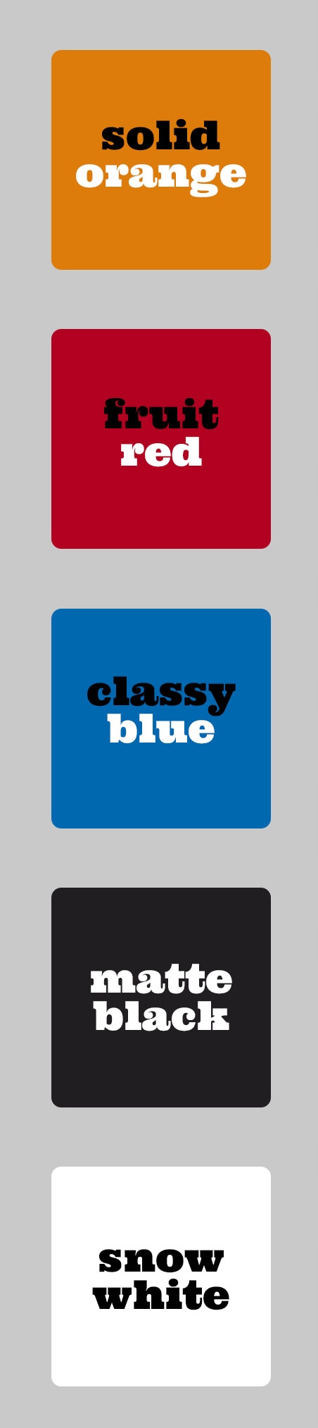 - Сообщите нам о выборе цвета карты и цвета печати. Для красной карточки мы предлагаем белую печать, более контрастную, чем черная. Оба цвета хорошо смотрятся на синей и оранжевой карточке. В случае белой карты — только черная печать, а в случае черной карты — только белая печать.