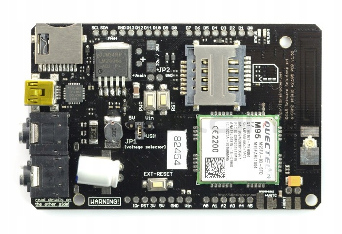 Новая версия модуля, сотрудничающая с Arduino и Raspberry Pi, которая обеспечивает связь в стандарте GSM и GPRS. На основании набора Qucttel M95 он позволяет вам проводить голосовые вызовы, отправлять SMS -сообщения. Пластина содержит: два разъема SIM -карты (двойная SIM -карта), гнездо MicroSD и аудио выходы/входы. Включает в себя разъемы для Arduino