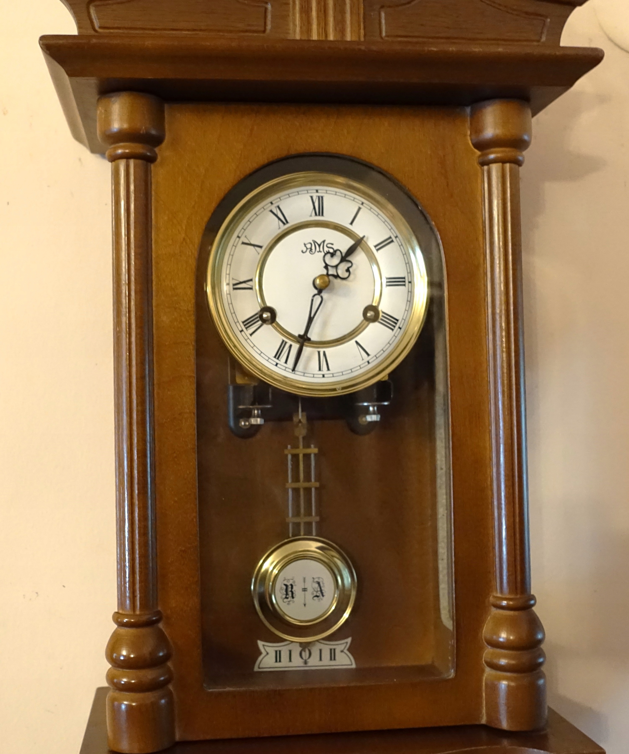 Часы A.M.S от известного и авторитетного бренда, в красивой эклектичной коробке. Механизм часов работает корректно и работает очень точно. Механизм часов отбивает полные часы и получасы на двух струнах с двумя молоточками. Очень редкая модель часов такого маленького размера, настоящая миниатюра.