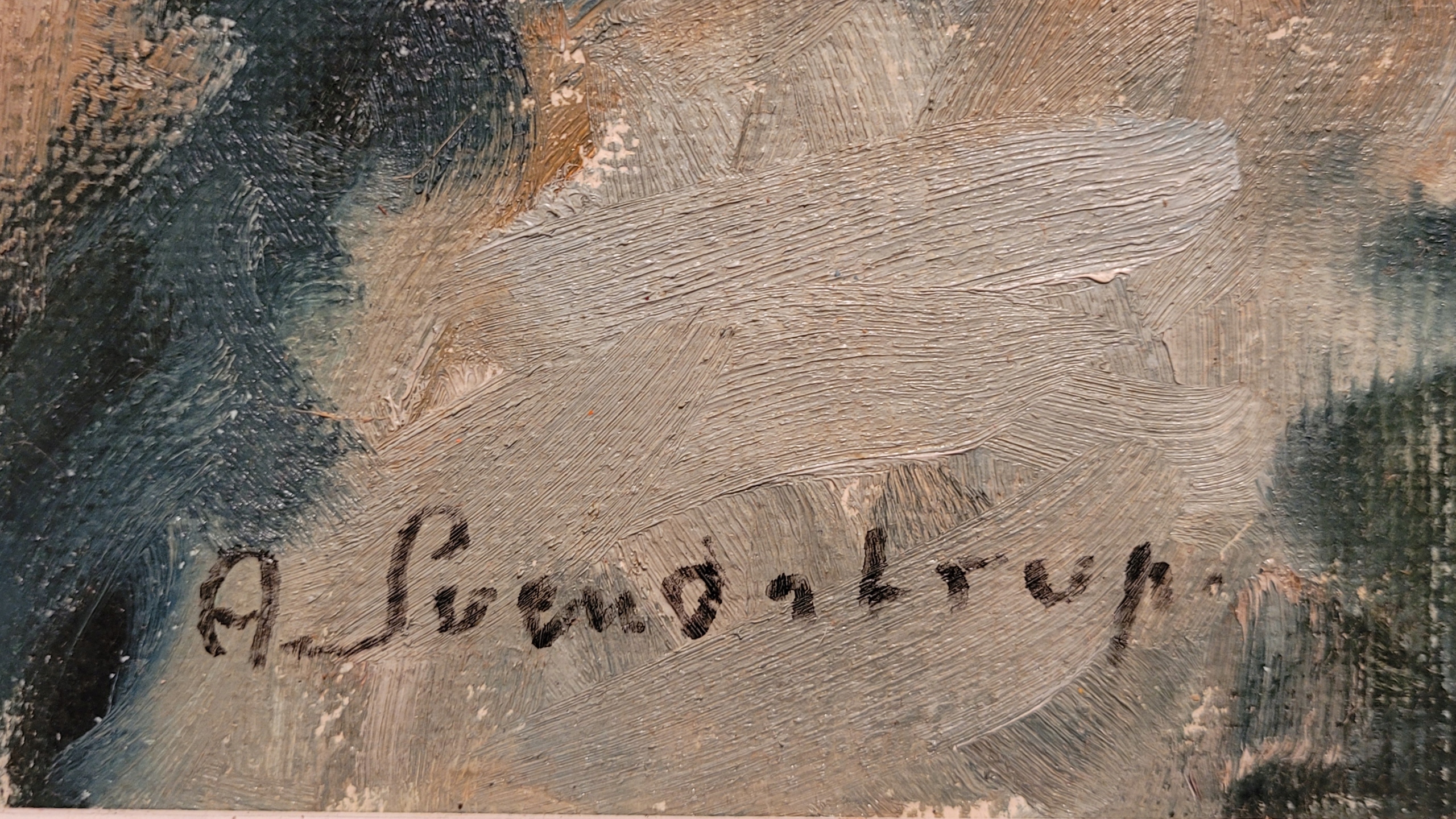 В левом нижнем углу подпись художника - А .СВЕНДСТРУП.