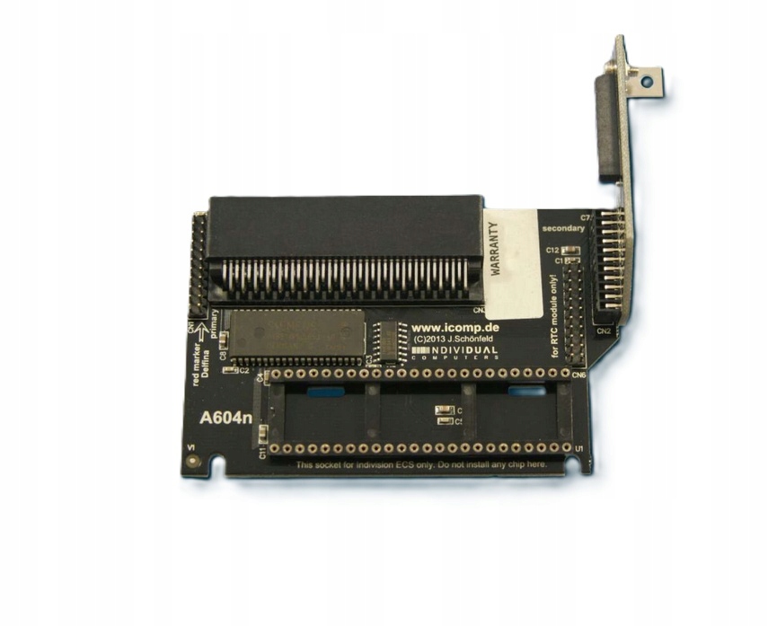 Память A604n для Amiga 600 - ЧИП +1 МБ под заглушкой. Необходимо, если мы хотим использовать в A600 порт синхронизации, порт USB или сканер Indi ECS. Он имеет вход для дополнительного модуля RTC (часы реального времени).