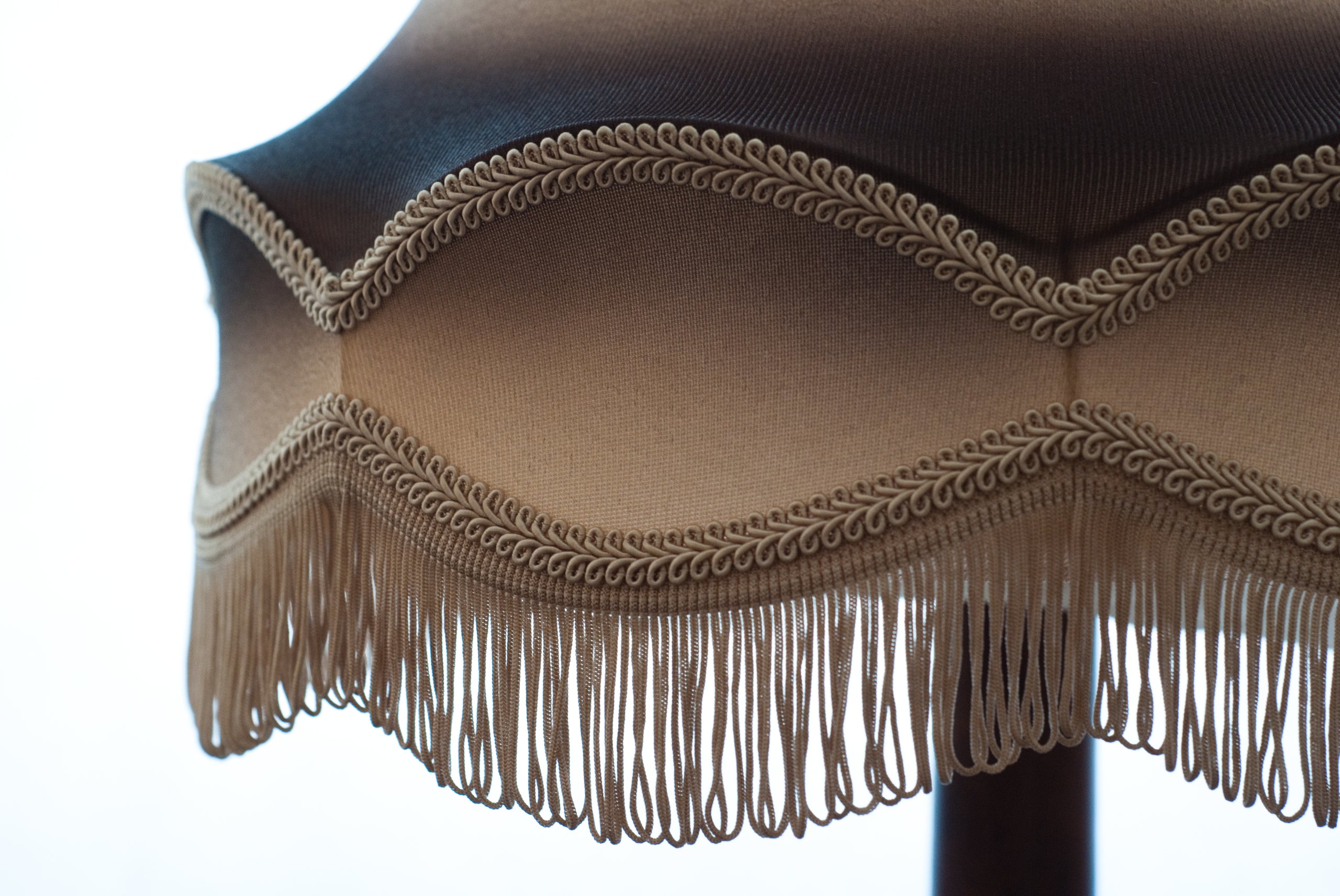 Классический абажур из ткани. Это абажур для светильников среднего размера, как напольных, так и подвесных. Абажур выполнен из ткани, пропускающей свет лампочки. Благодаря этому типу ткани абажур обеспечивает рассеянный и декоративный свет.