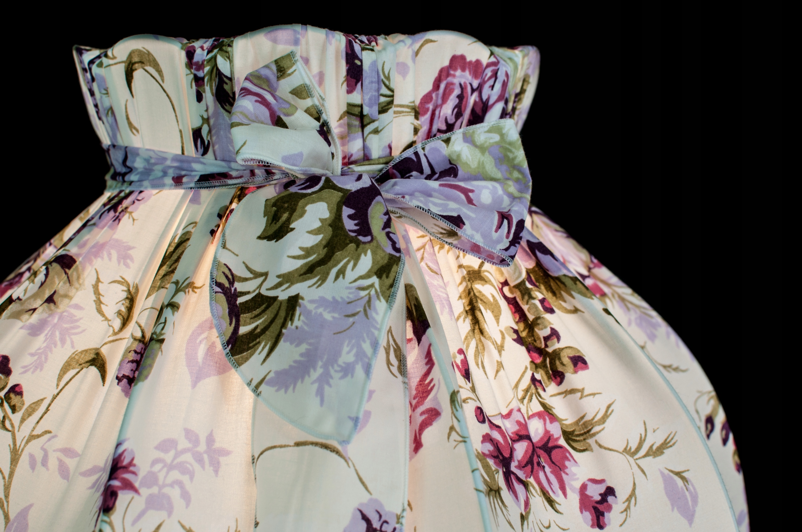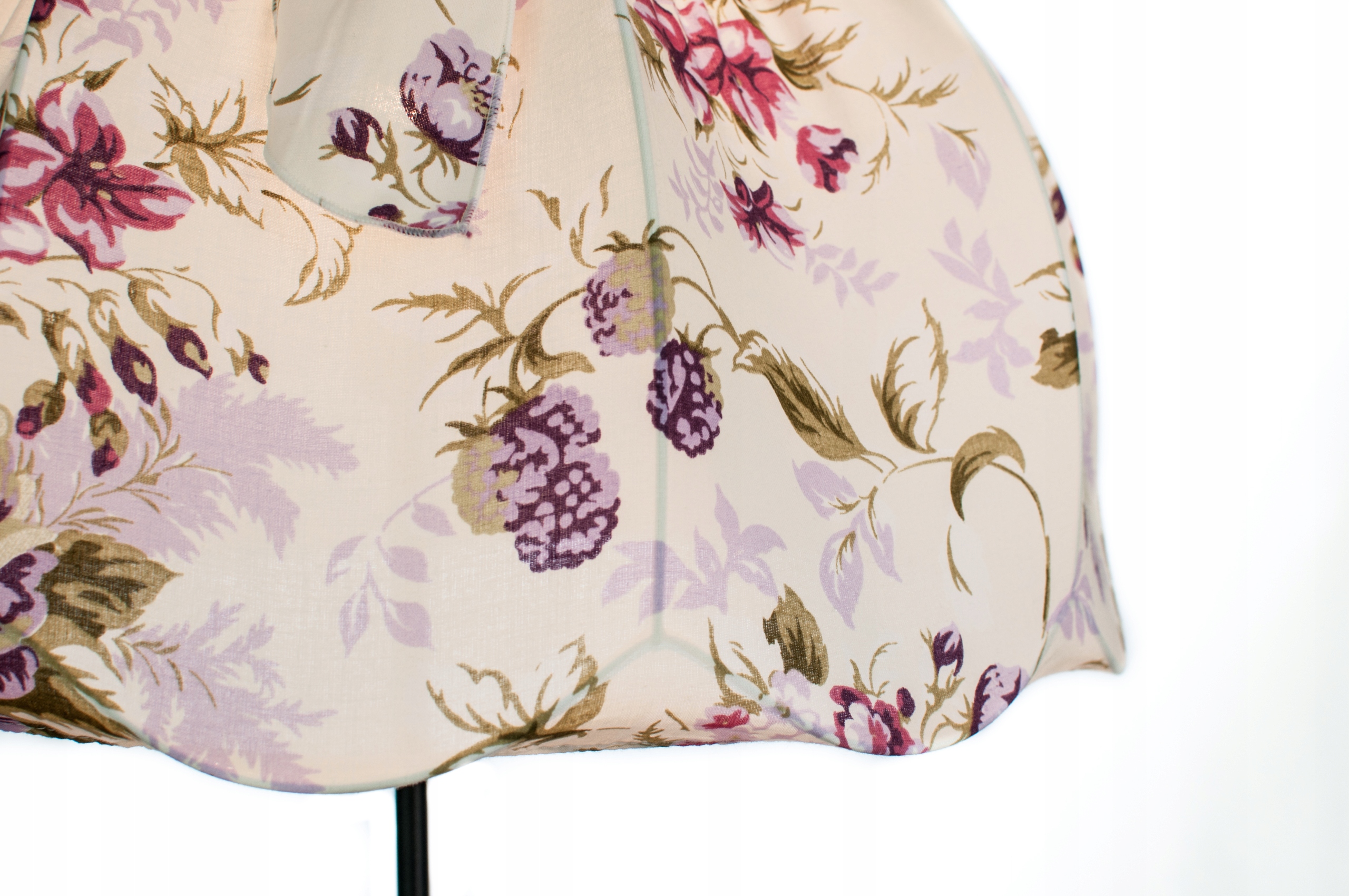 Абажур С БАНТОМ, БОЛЬШОЙ РАЗМЕР - коллекция ХЛОПОК ФИОЛЕТОВЫЕ РОЗЫ, РОЗЫ, БЕЖЕВЫЙ ФОН