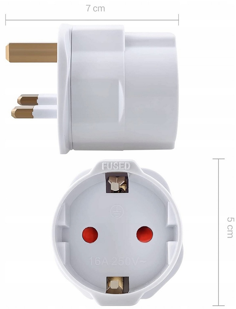 Адаптер к розетку, который позволяет подключать оборудование с европейской вилкой к английскому розетку.