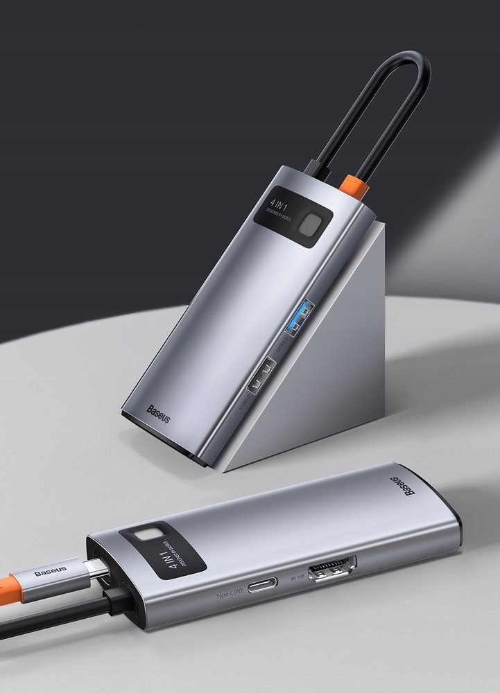 ⚡ Непрерывная миниатюризация оборудования является причиной того, что многие компьютеры, в частности, ноутбуки и позиции All-In-One имеет только 1 или 2 порта USB. Эти проблемы начинаются, когда вам нужно подключить, например, дополнительный монитор. Конечно, добраться до центра Baseus. С его помощью вы преобразуете один порт USB Type C вашего компьютера в 4 дополнительных разъема! > ⚡ Спецификация