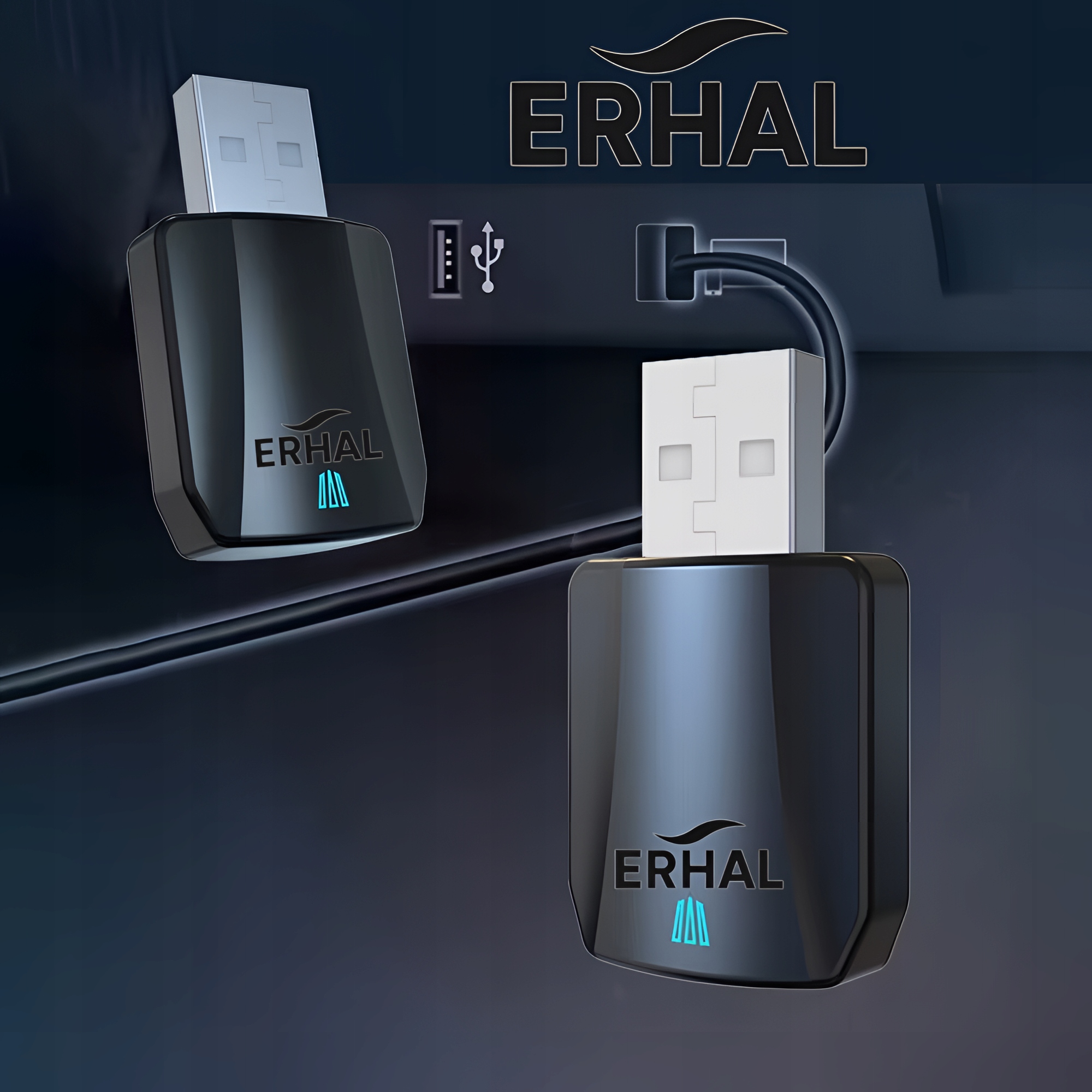 Беспроводной адаптер автомобиля характеризуется легким и стильным дизайном, который облегчает транспорт и не занимает место в интерьере автомобиля. Он поставляется с адаптером USB Type C, который может быть подключен к USB или USB-C