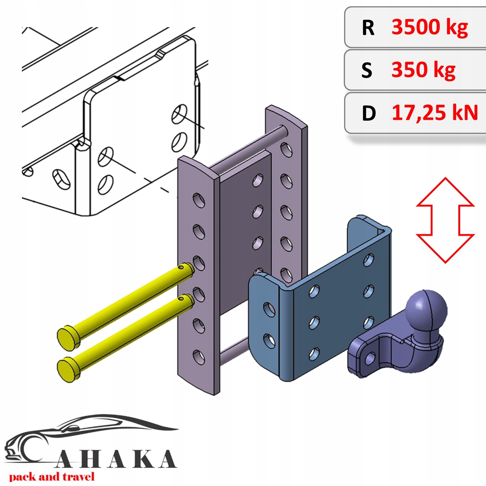 Адаптер для быстрых изменений в высоте расстояния между буксирными крючками 83x56 мм