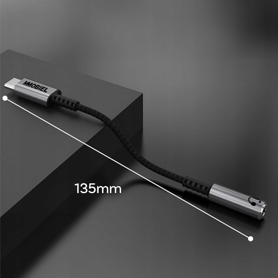 Аудиоадаптер USB-C на гнездо изготовлен из высококачественного алюминия и кабель обернут очень гибкой оплеткой.