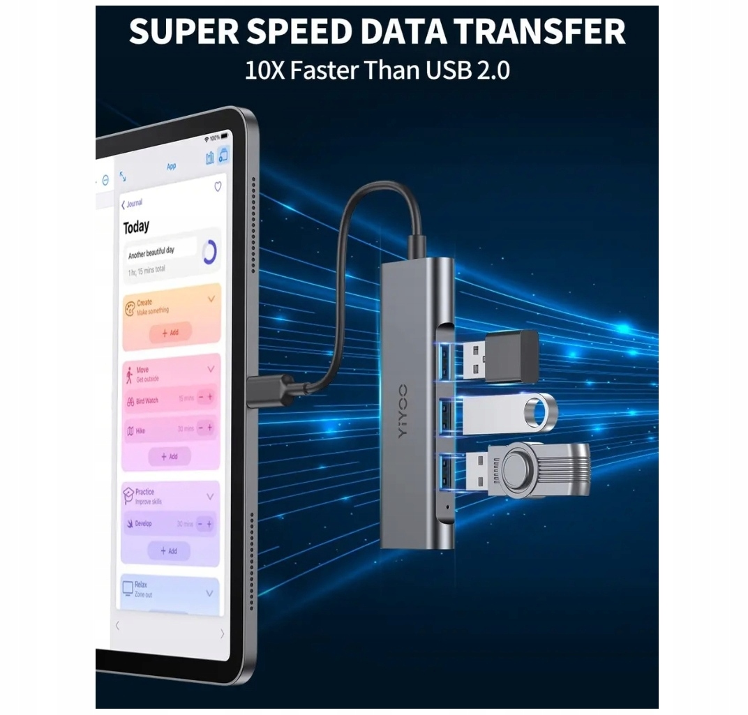Концентратор USB-C YIYOO 4-в-1: оснащен 4 портами USB 3.0, все порты этой док-станции могут работать одновременно и подходят для большинства ноутбуков типа C для подключения большего количества USB-драйверов, клавиатуры, внешнего диска. . Только 1 станция может удовлетворить 4 потребности. Суперскоростной USB 3.0: 4 порта USB 3.0 синхронизируют данные на невероятной скорости до 5 Гбит/с, что в 10 раз быстрее, чем USB 2.0. фильмы, музыку и файлы можно перенести за считанные секунды. (Примечание. Максимальный выходной ток каждого порта данных USB 3.0 составляет 900 мА, поэтому он может заряжать устройства, но не поддерживает быструю зарядку.) РАСШИРЕНИЕ БОЛЬШЕ ПОРТОВ: расширяет порт TYPE-C или порт Thunderbolt 3 вашего ноутбука до 4 портов USB 3.0, что обеспечивает большое удобство для ноутбуков, оснащенных только портами TYPE-C. Вы можете одновременно использовать клавиатуру, мышь, Bluetooth-приемник или u-диск. ВЫСОКАЯ СОВМЕСТИМОСТЬ: не нужно загружать какие-либо драйверы, просто подключите и работайте. Вы почувствуете удобство этого хаба. Высокая совместимость делает его совместимым с УЛЬТРАТОНКИЙ ДИЗАЙН: адаптер-концентратор KUKIY USB-C с корпусом из авиационного алюминия создает стильный и безопасный, более прочный, более эффективный и обеспечивает более быстрое рассеивание тепла для защиты ваших устройств. Тонкий и легкий дизайн позволяет легко поместить его в любую сумку или портфель. Описание продукта Линия разъемов TPE Соединительный кабель изготовлен из материала TPE, который достаточно прочен для ежедневного использования и выдерживает высокие растягивающие усилия. Качественная жила кабеля способна обеспечить целостность, точность и своевременность передачи данных. Быстрее, чем вы думали 1,3 порта USB 3.0, обратная совместимость с USB 2.0 и USB 1.1 2. Поддерживает скорость передачи данных до 5 Гбит/с 3. Больше не беспокойтесь о беспроводной сети и задержке клавиатуры Тонкий и компактный дизайн Вес: 0,13 фунта Размеры из алюминиевого сплава: 3,86 * 1,18 * 0,43 дюйма (Д * Ш * В). Поэтому он поместится в любую сумку или портфель. Изящный корпус из алюминиевого сплава. Используя корпус из авиационного алюминия по сравнению с пластиковыми адаптерами, док-станция YIYOO USB-C обеспечивает стильный и более безопасный, более прочный, эффективный и быстрый отвод тепла для защиты ваших устройств.