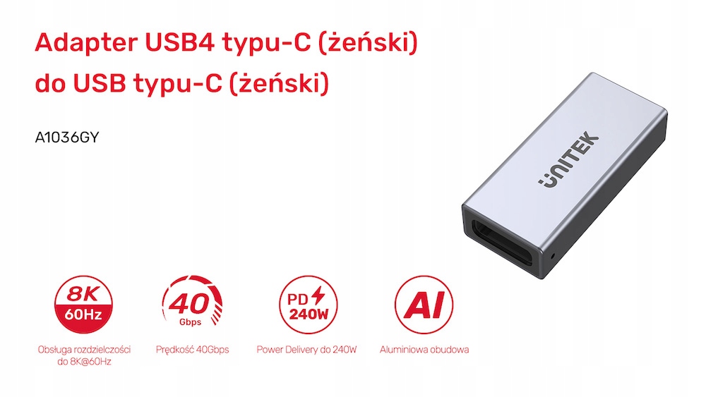 Адаптер USB-C Роз’єм USB4 4.0 Гнездо 8K 60 Гц 40 Гбіт/с PD 240 Вт Al