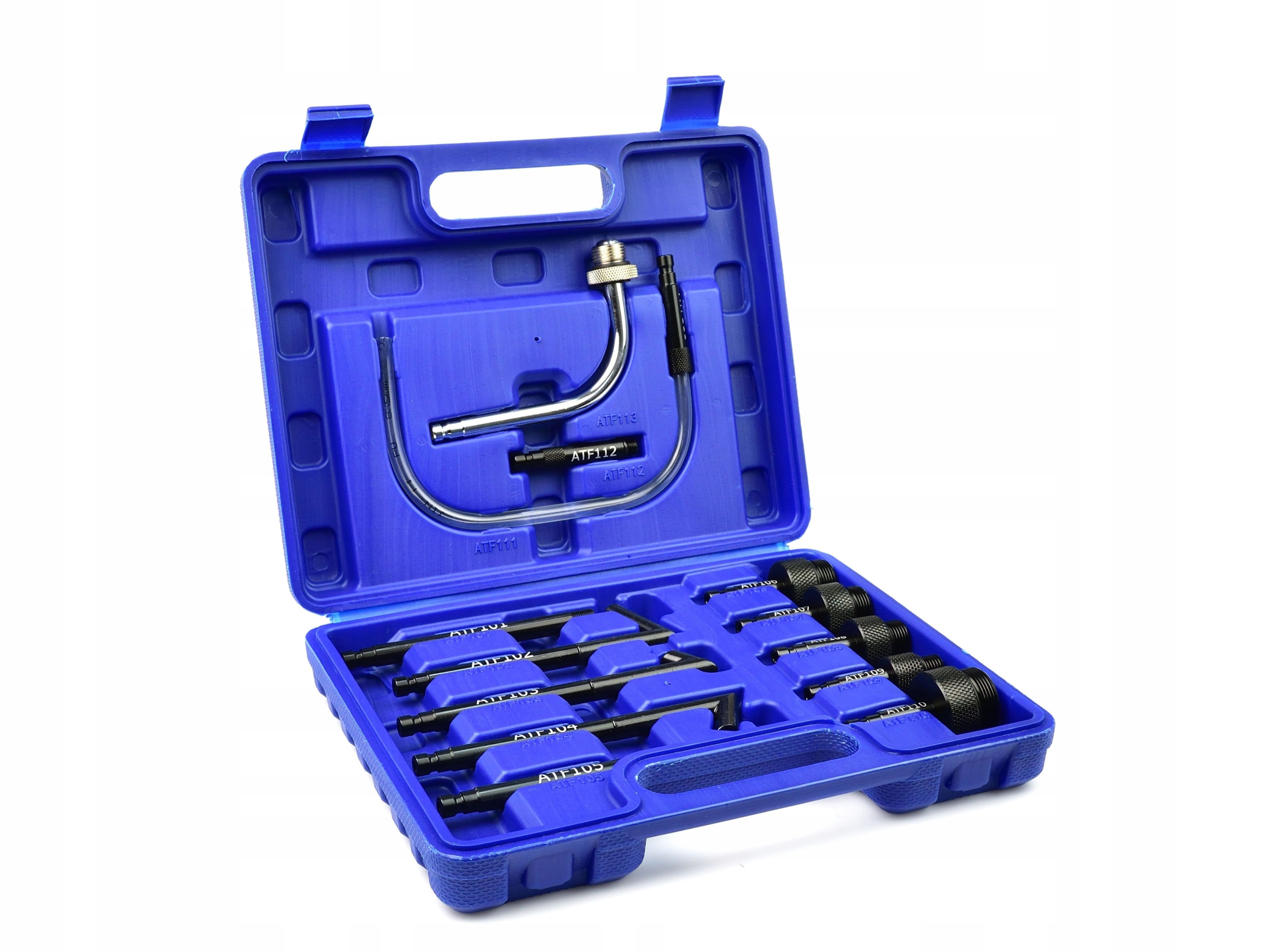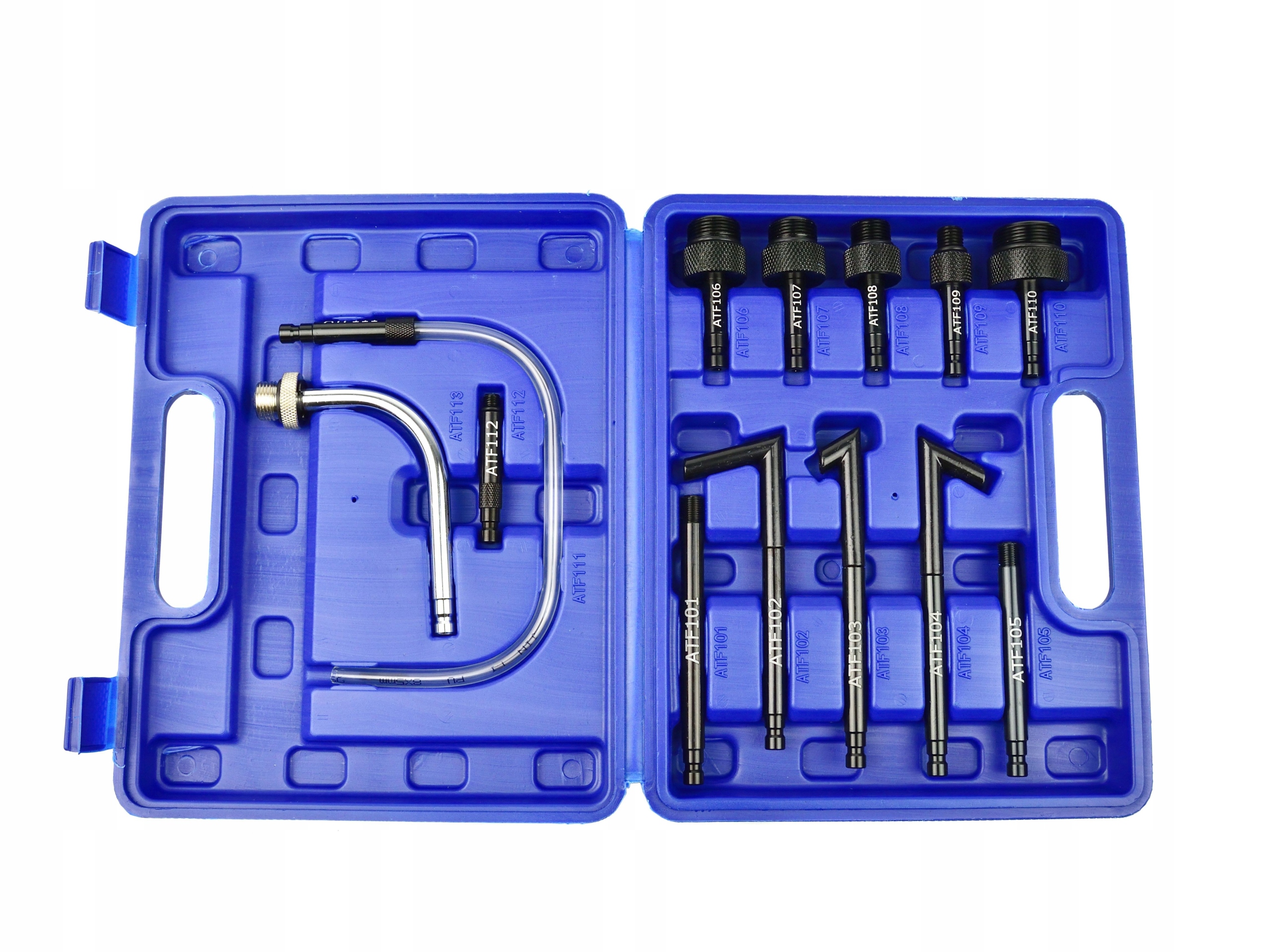 Комплект специализированных адаптеров для замены и долива масла в автоматических коробках передач. В комплект входят 13 адаптеров, обеспечивающих работу коробок передач наиболее популярных марок легковых автомобилей.