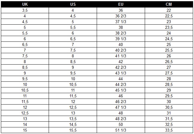 пол - это лист бумаги, чтобы один из его края рядом со стеной. Встаньте на бумаге с каблуком у стены. Отметьте место, где ваши пальцы заканчиваются карандашом. Измерьте расстояние между стеной и местом, которое вы отметили на бумаге, а затем сравните эту длину с длиной в нашей таблице размера.