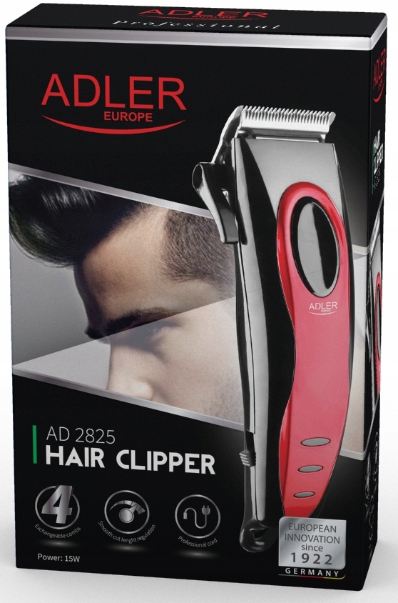 Машинка для стрижки волос AD2825 — профессиональное оборудование для использования в парикмахерских, а также для домашнего использования для пользователей, которые ищут надежные и функциональные решения. Машинка для стрижки волос Adler оснащена прочными стальными лезвиями, обеспечивающими длительный срок эксплуатации, и 4 сменными насадками, позволяющими плавно регулировать длину стрижки. Более длинный, чем стандартный, кабель (1,9 м) позволяет легко управлять машинкой во время стрижки. Независимо от того, является ли ваша работа стрижкой или нет, машинка для стрижки AD2825 превратит ее в удовольствие.