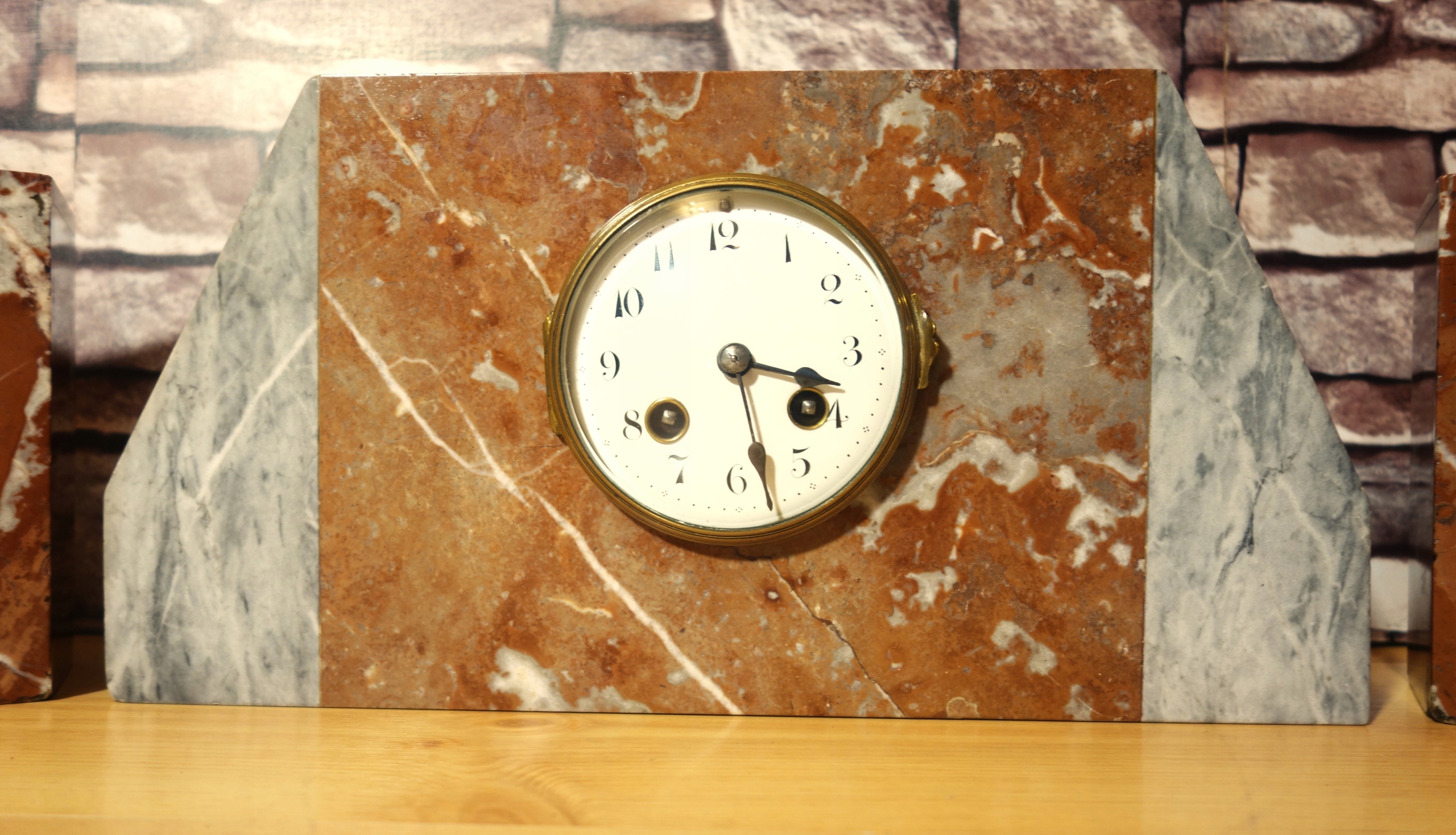 Ładny Francuski ,duży ,zegar kominkowy marmur plus przystawki