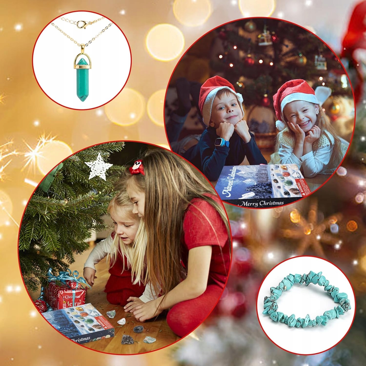Адвент-календарь с драгоценными камнями — это уникальный способ отсчитывать дни до Рождества. В набор входит 21 разный камень, в том числе 20 г цветного агата и колье из бирюзы, которое наполняет каждый день радостью и сюрпризами.