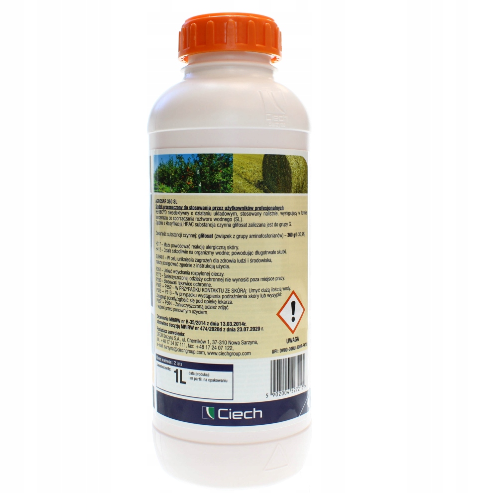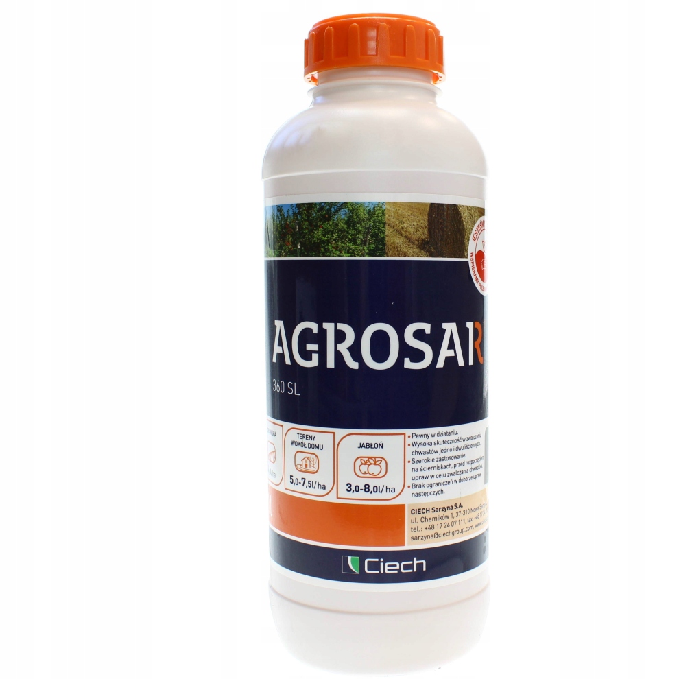 Агросар 360 СЛ — гербицид для внекорневой подкормки. Он имеет системный эффект. Борьба с пыреем и другими однодольными и двудольными сорняками (однолетними и многолетними).