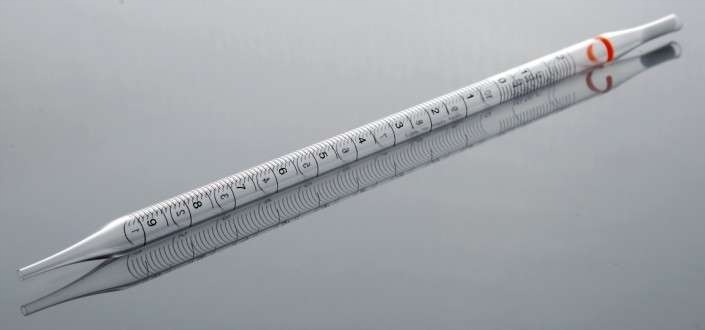 Акрилова піпетка об’ємом 2 мл досягає дна стерильної пляшки об’ємом 1 літр
