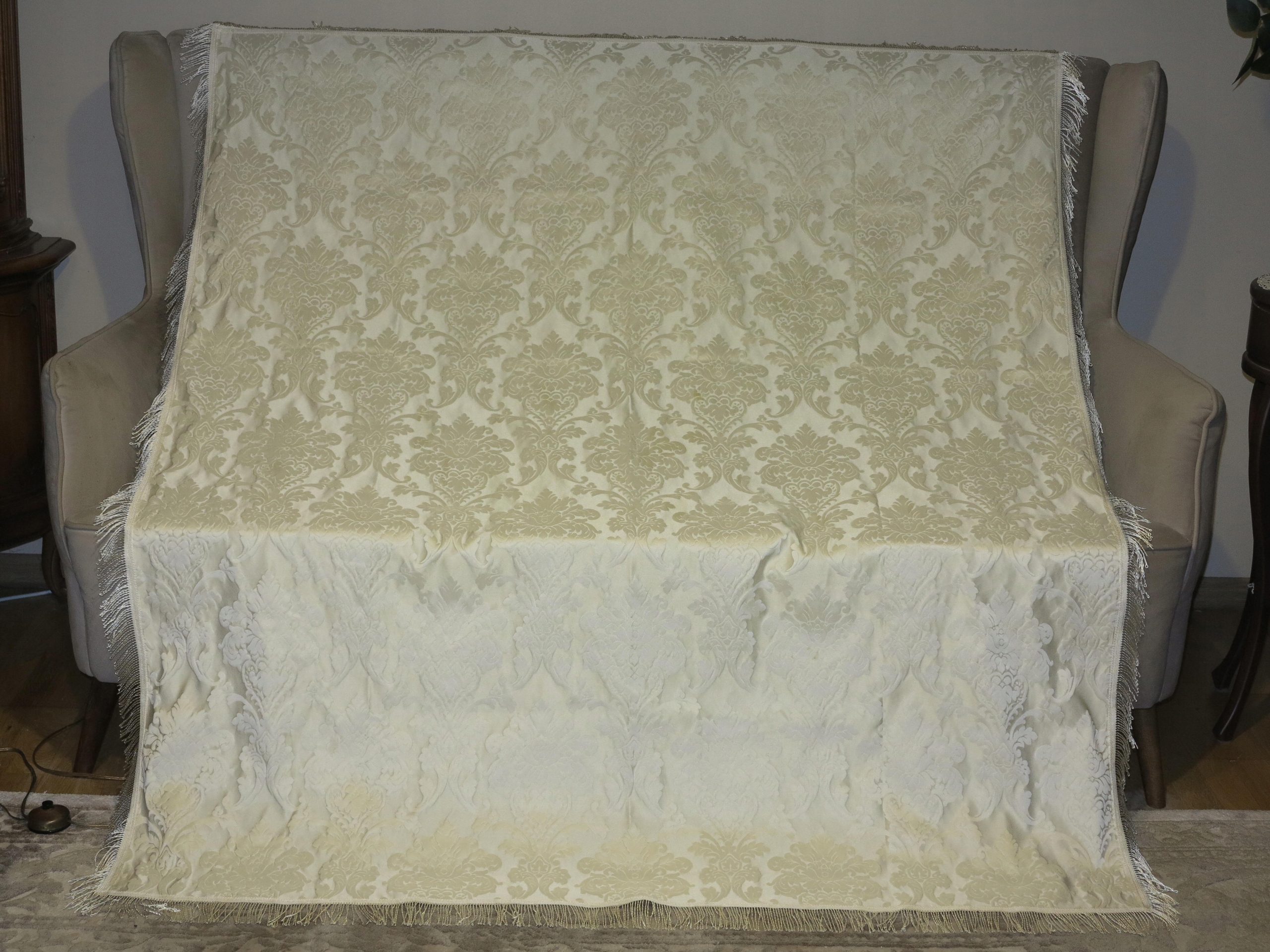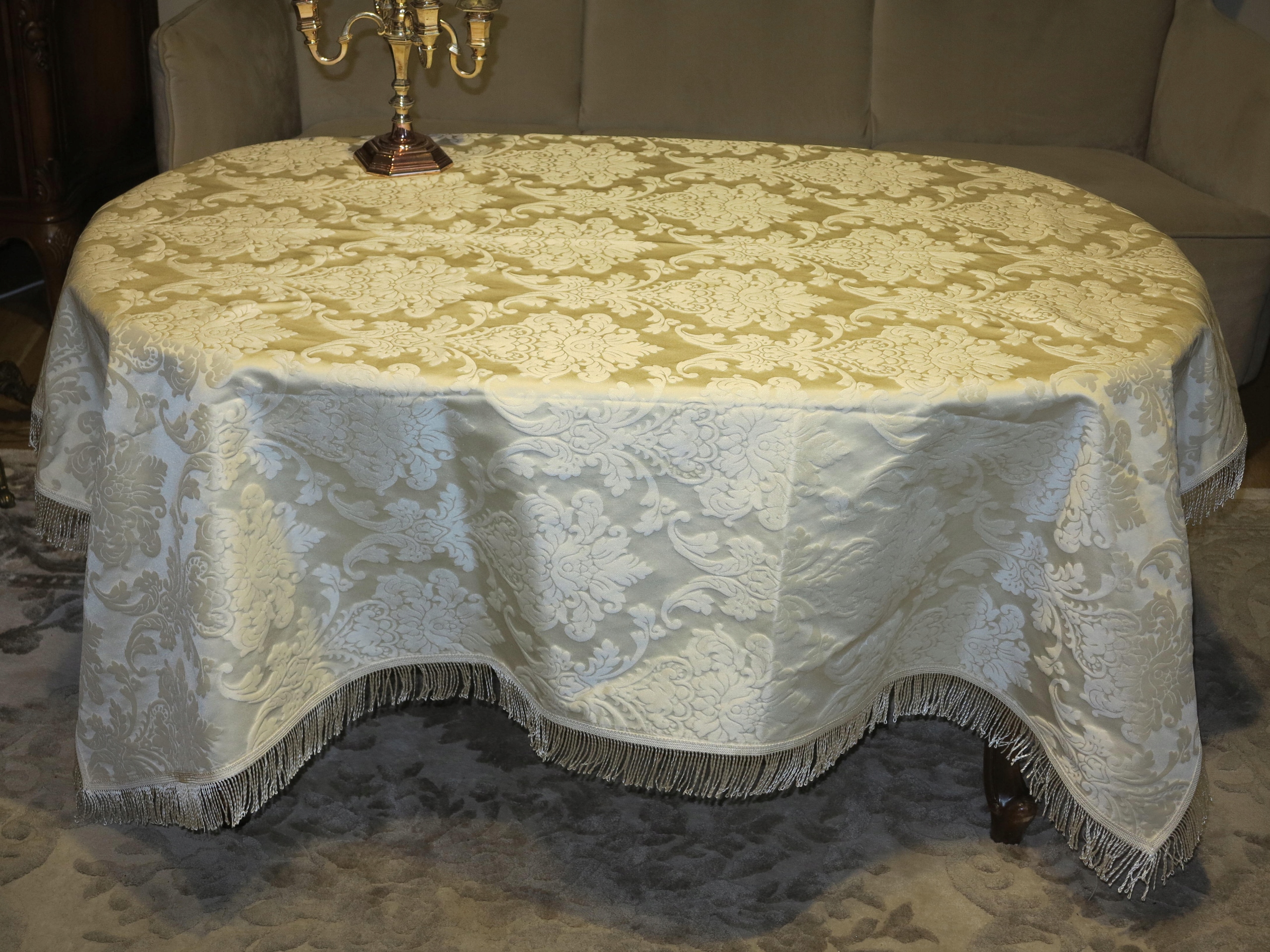 Тема аукциона - красивая скатерть со стильным узором. Вокруг бахромы. Строга имеет размеры: 162/147 см плюс для около 5 см. Использовалась скатерть, в супер хорошем состоянии. Я рекомендую