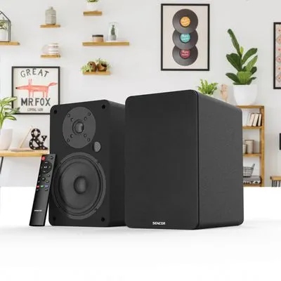 Sencor TZ SMC BS50 — две полочные колонки с чистым и динамичным звуком с высокими басами. Максимальная пиковая мощность преобразователей — 200 Вт. Изделие имеет встроенный цифровой звуковой процесс с различными настройками режимов. В динамиках можно регулировать низкие и высокие частоты с помощью ручного регулятора. Универсальный продукт, подходящий на любой случай.