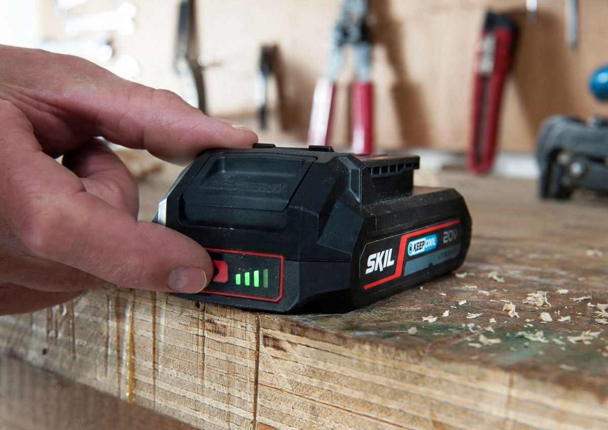 - Питание питания 20 В батареи из красной линии линии Skil (цвет инструмента - красный)