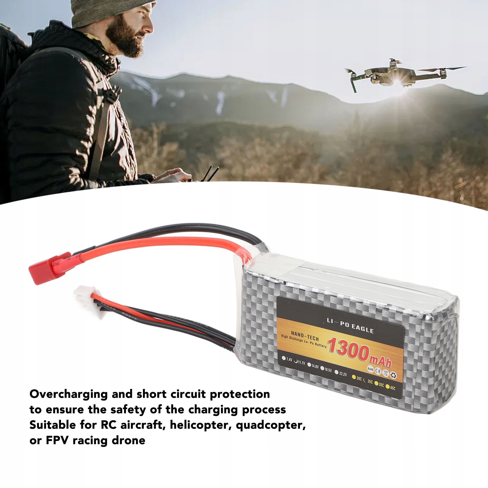 2. Высокая емкость: благодаря емкости аккумулятора 1300 мАч, эта батарея Lipo обеспечивает более длительное время полета, так что вы можете наслаждаться более длинными рейсами и более захватывающими воздушными маневрами.