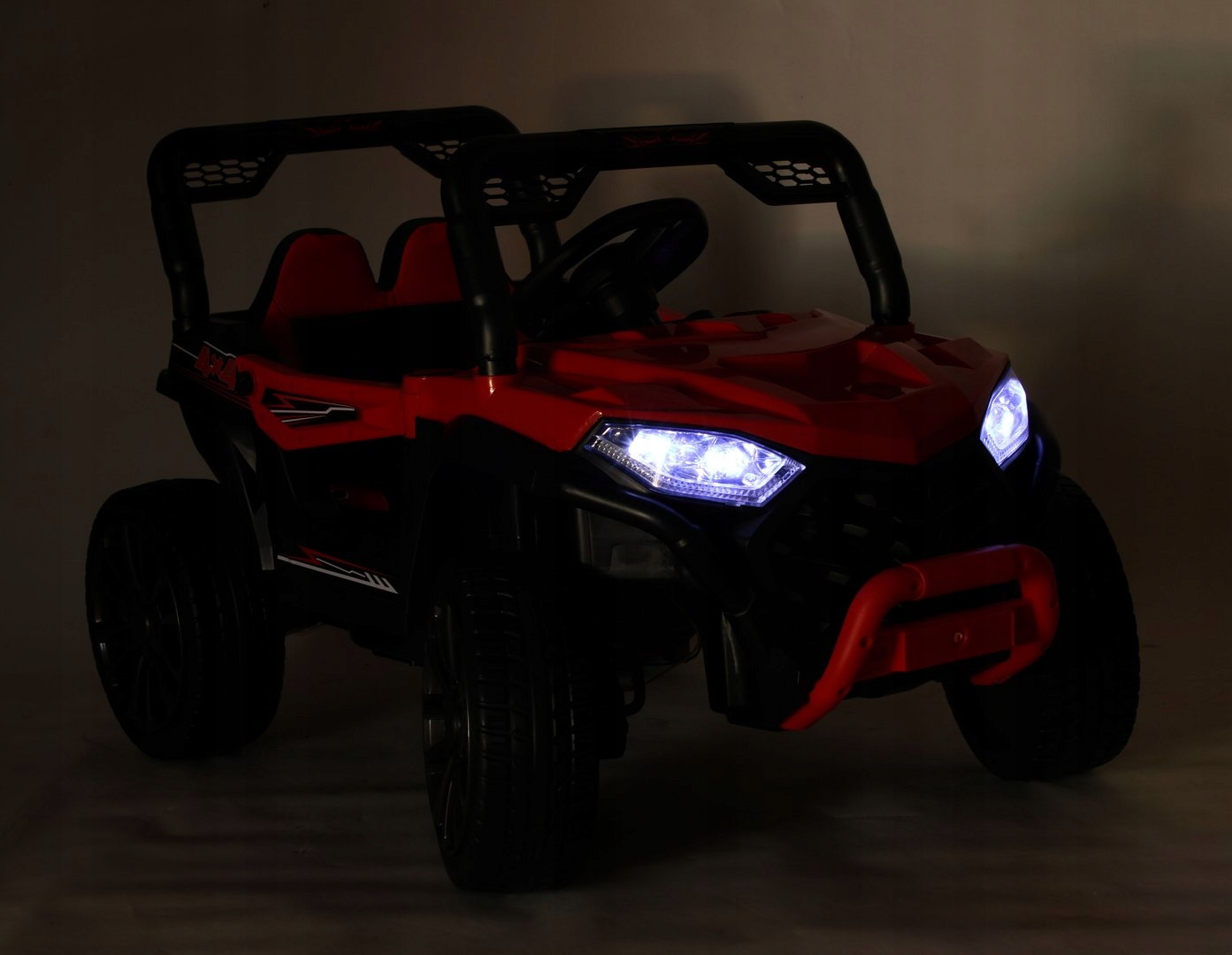 двигатель: 4 х 40 Вт 12 В. аккумулятор / 7 Ач три скорости движения, смена скорости с помощью пульта две ручные скорости движения мягкие колеса EVA - тихая и комфортная езда мягкое сиденье из эко-кожи медленный старт - автомобиль не дергается при запуске функция раскачивания/раскачивания - благодаря чему автомобиль раскачивается вперед и назад электрический тормоз - ребенку достаточно убрать ногу с педали газа и машина автоматически останавливается амортизаторы ремни безопасности светодиодные фонари открывающиеся передние двери с блокировкой боковые зеркала современная панель с мелодиями, истории, звуковой сигнал и звук двигателя USB, вход AUX, регулировка громкости музыки на панели индикатора заряда аккумулятора.