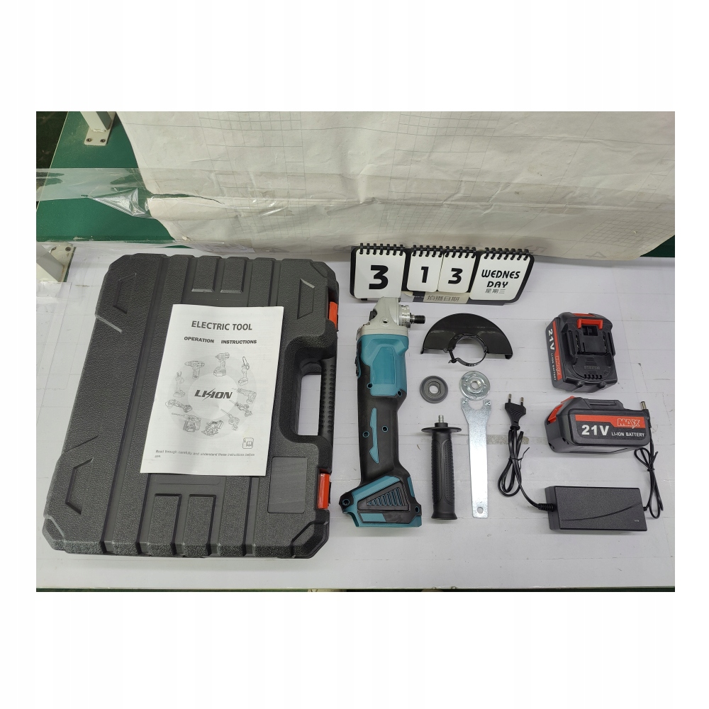 АКУМУЛЯТОРНА КУТОВА ШЛІФУВАЛЬНА МАШИНА 21В 125ММ + 2 АКУМУЛЯТОРИ