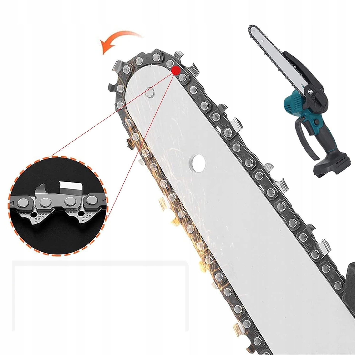 - 🟩Высококачественная направляющая цепь: 6 -дюймовая цепь, прошедшая глубокую закалку для обеспечения плавности резки. Износостойкий и острый. Деревянная конструкция зубьев позволяет бензопиле застревать на ветках, что делает резку более эффективной и быстрой.