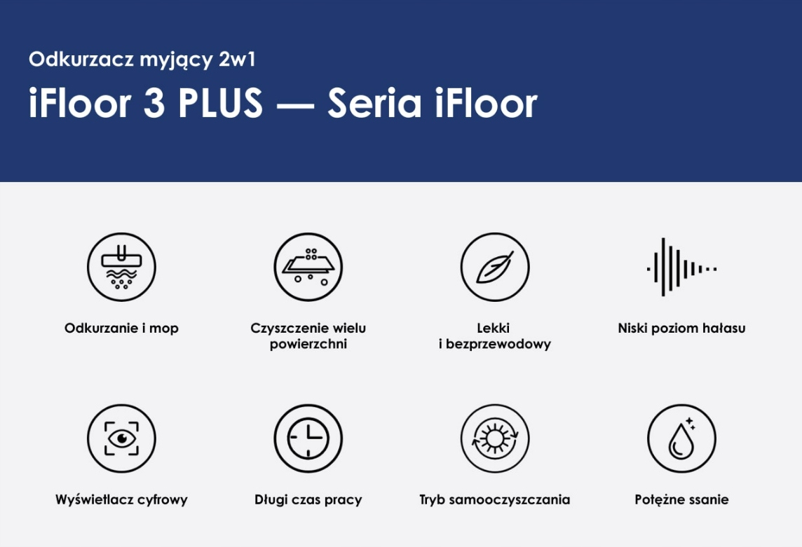 - Эффективность и бесшумность: двигатель мощностью 220 Вт — это передовая технология. Обеспечивает максимальную мощность всасывания и бесшумную работу. iFloor 3 Plus идеально подходит для использования с детьми и домашними животными.