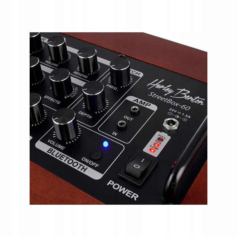 Harley Benton StreetBox-60 — это портативный акустический усилитель, оснащенный аккумулятором и функцией Bluetooth, идеально подходящий для небольших выступлений на открытом воздухе, а также концертов в небольших помещениях, таких как бары или клубы. StreetBox-60 имеет три независимых канала, позволяющих подключить электроакустическую гитару, электроакустическую гавайскую гитару и микрофон. Благодаря переключателю Active/Passive на канале 1 можно легко подключать инструменты как с активной, так и с пассивной электроникой.