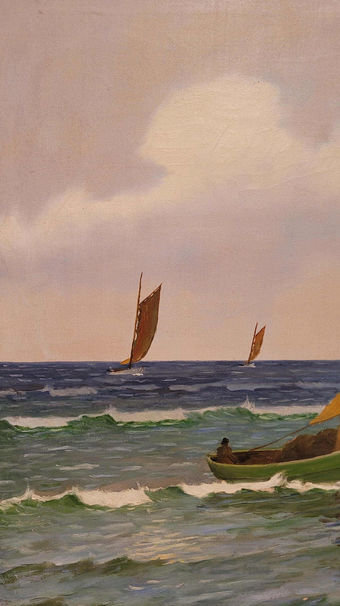 Альберт Петерсен (1875-1957) - «Парусные лодки», старая нефтяная картина.