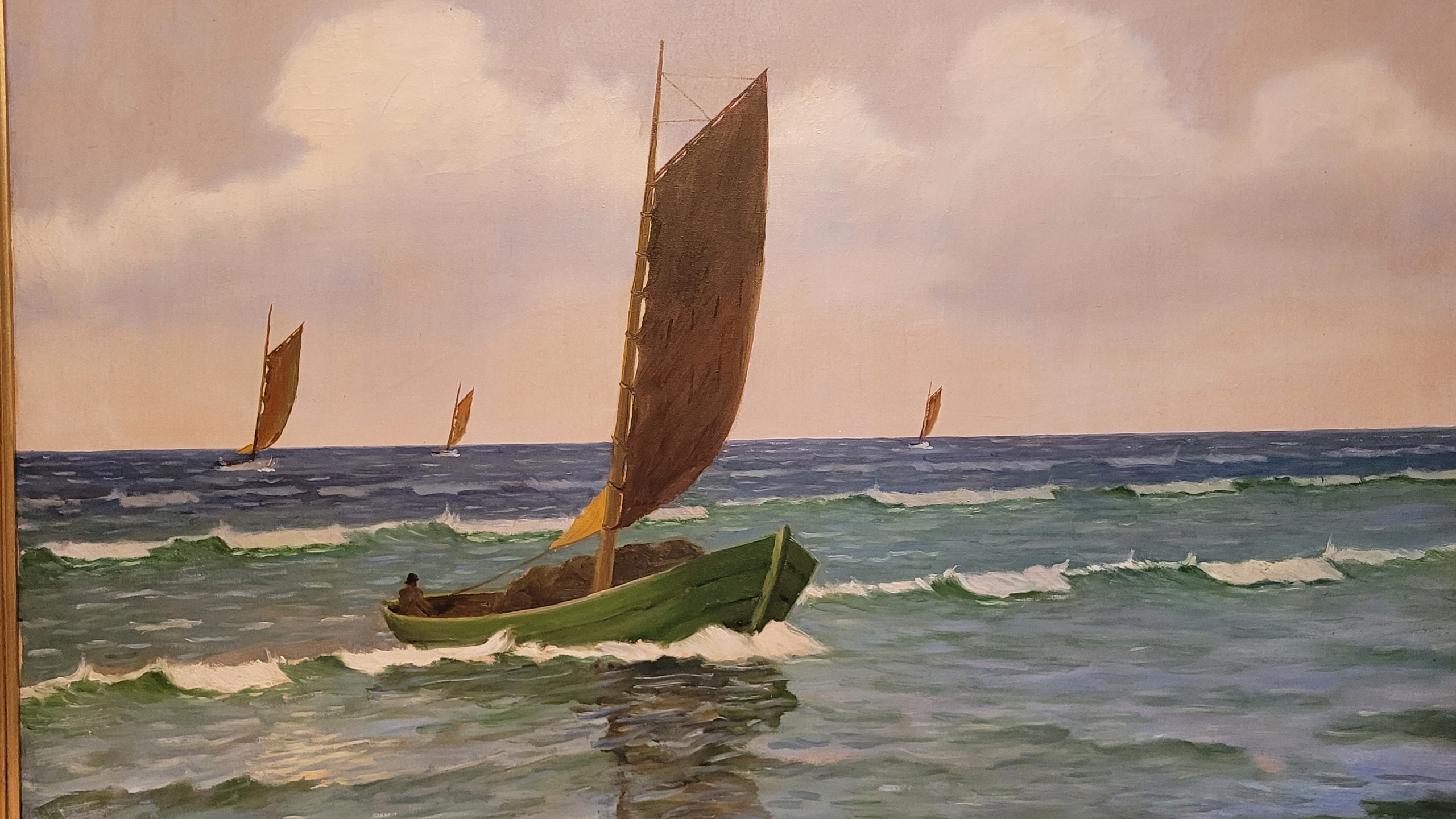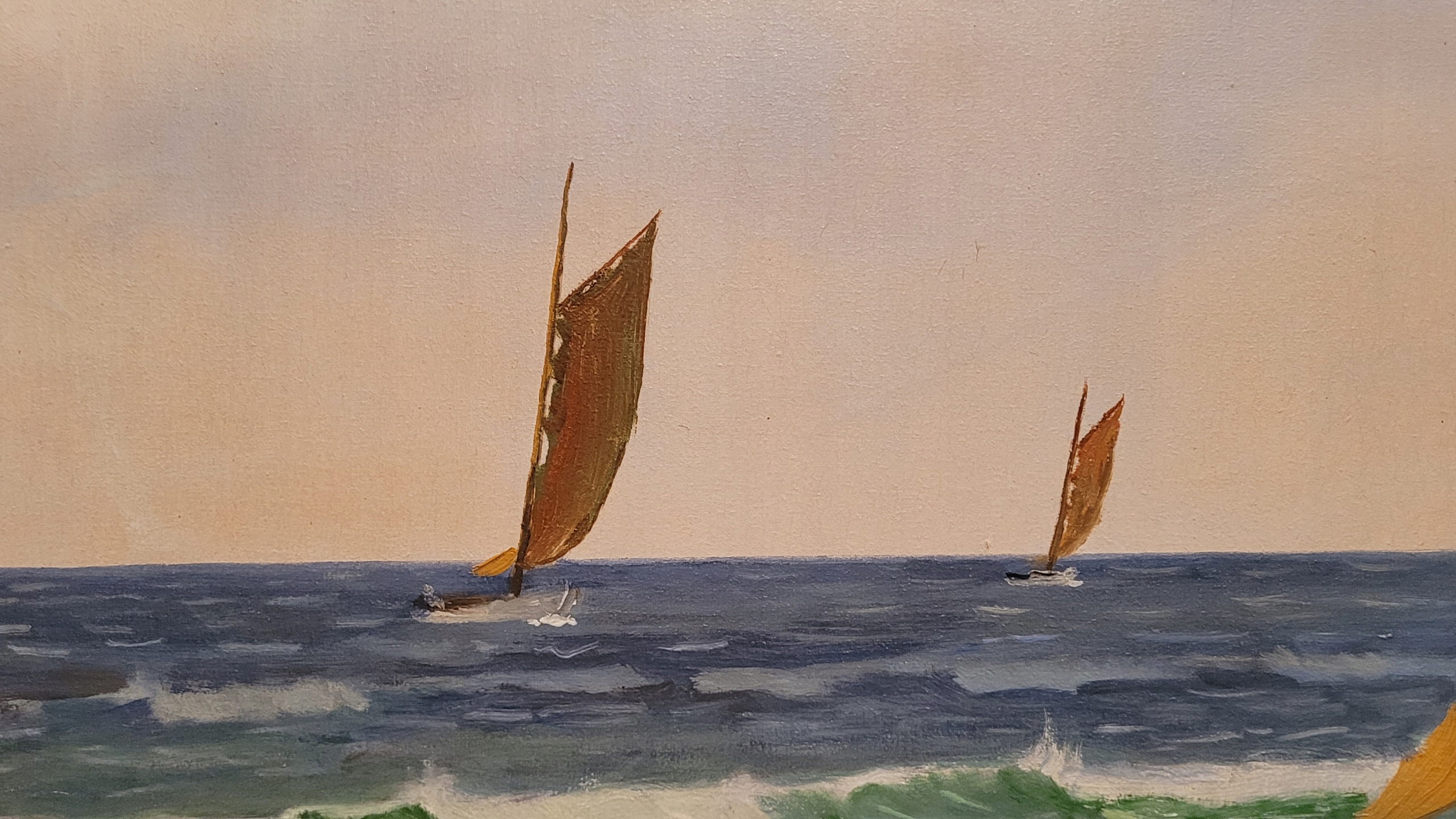 Тема продажи - красивая старая нефтяная картина "парусные лодки".