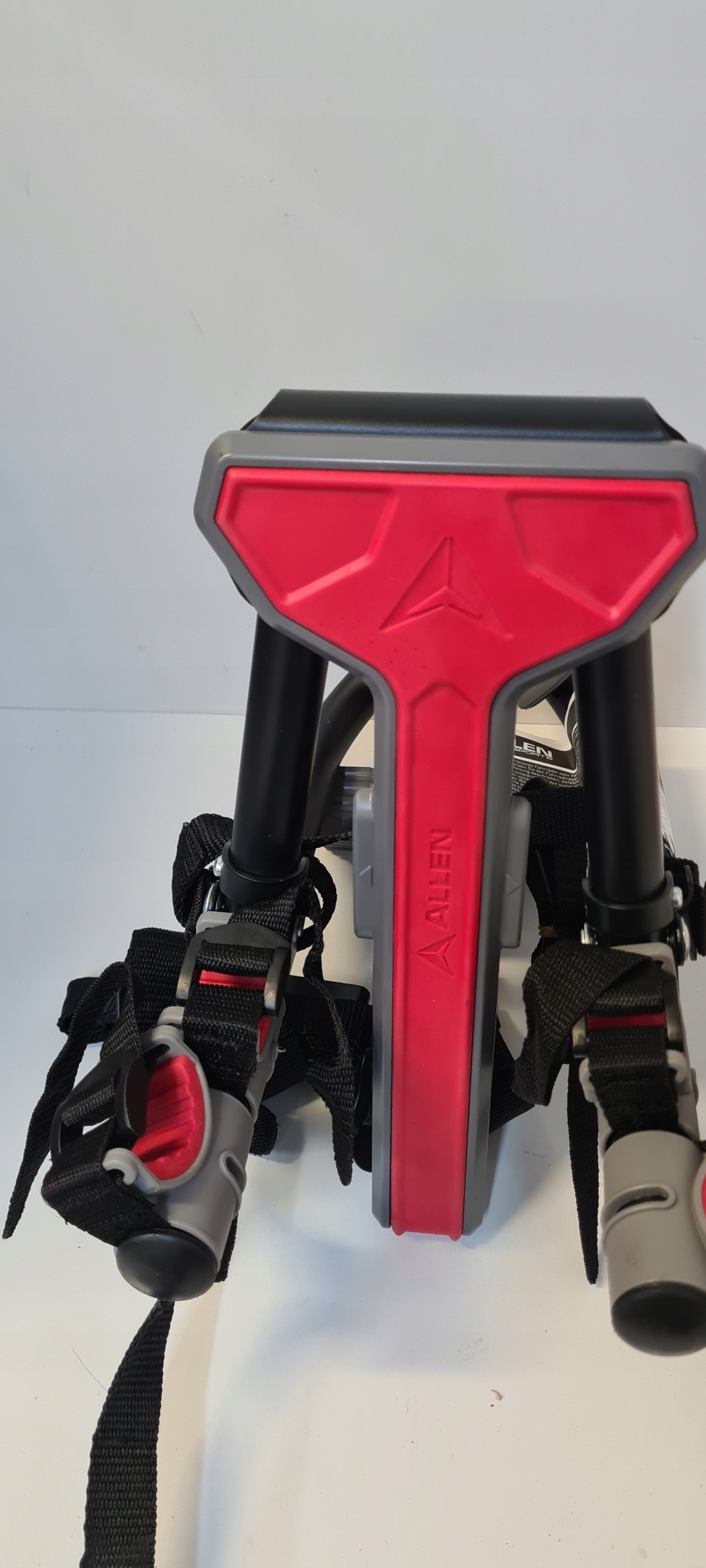 RackAllen Sports чрезвычайно компактное крепление для велосипедов, идеально подходящее для путешествий и поездок на работу. Он имеет красно-черный цвет и может складываться до небольших размеров, что позволяет удобно хранить его в сумке или рюкзаке. Крепление обеспечивает устойчивое крепление велосипедов к большинству автомобилей, включая седаны, хэтчбеки, минивэны и внедорожники, благодаря трем мягким ножкам, опирающимся на автомобиль, и трем регулируемым ремням безопасности.