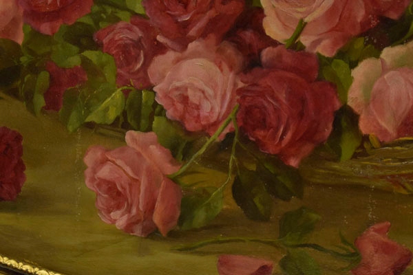 alois Zablicky (1883-1962) Artprice до 22800 € - работы художника в основном продавались в Австрии. h1> Натюрморт с корзиной цветов, масло, подписано. Изображение показывает натюрморту с букетом роз, разбросанными из плетеных корзин. Розы имеют разнообразные оттенки. На заднем плане вы можете увидеть деревья и наброски холмов. Изображение подписано в правом нижнем углу: «A. Zazeblicky» h1> Размеры: 143x80 см h1>