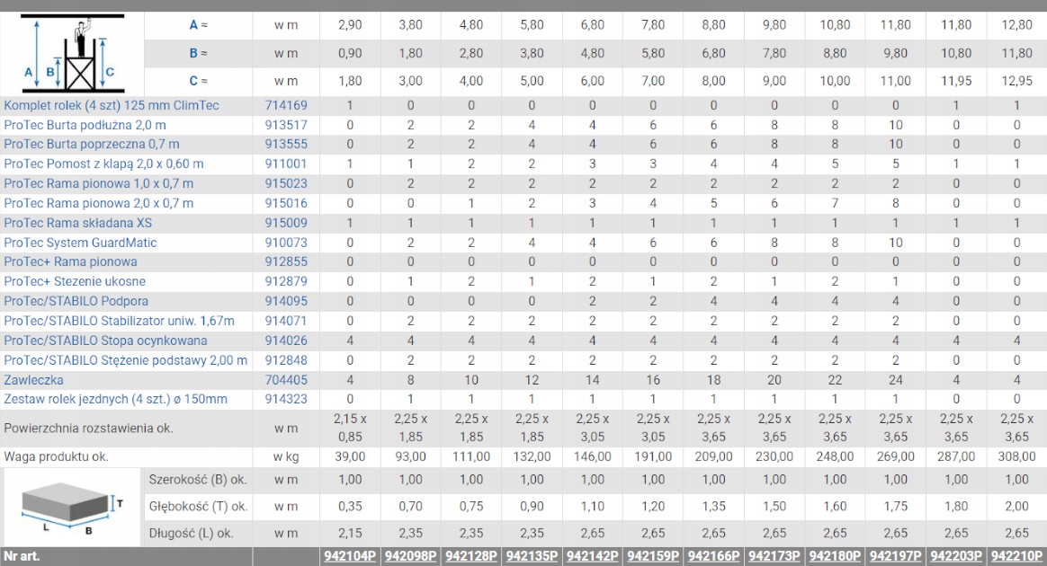 - Сертификат TÜV, грузоподъемность 200 кг/м² согласно PN EN 1004- 1